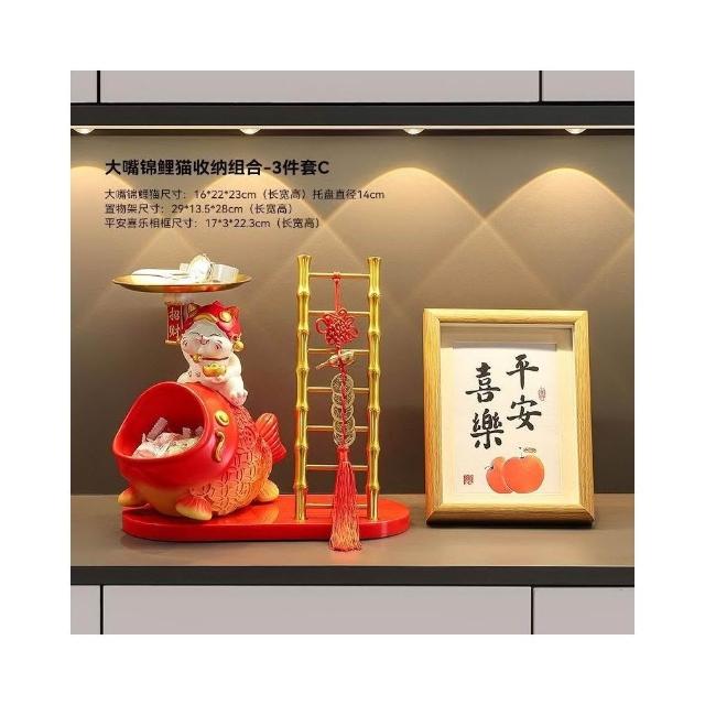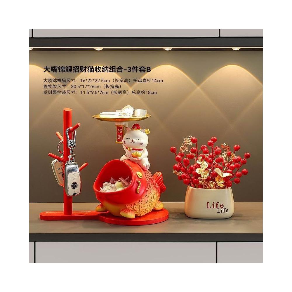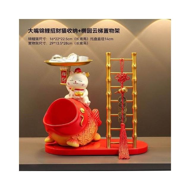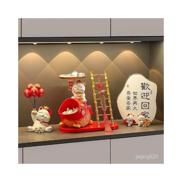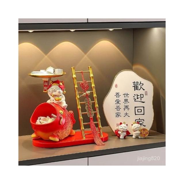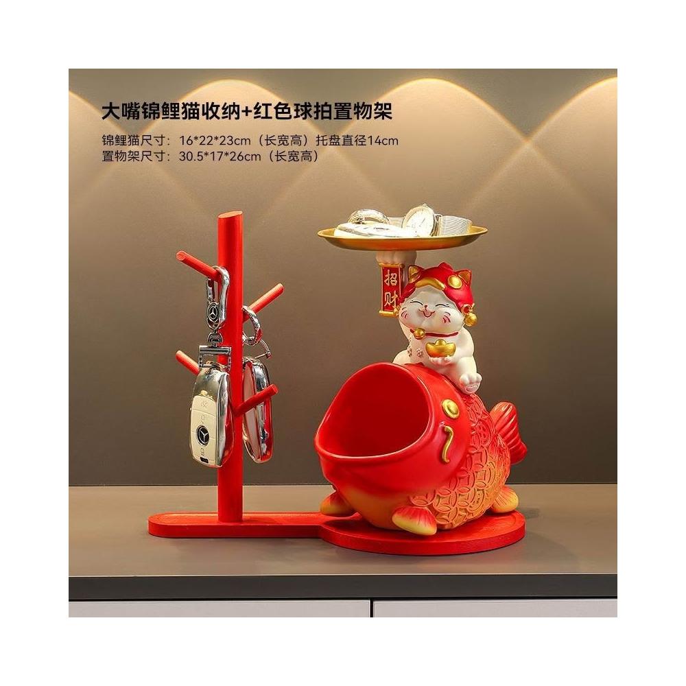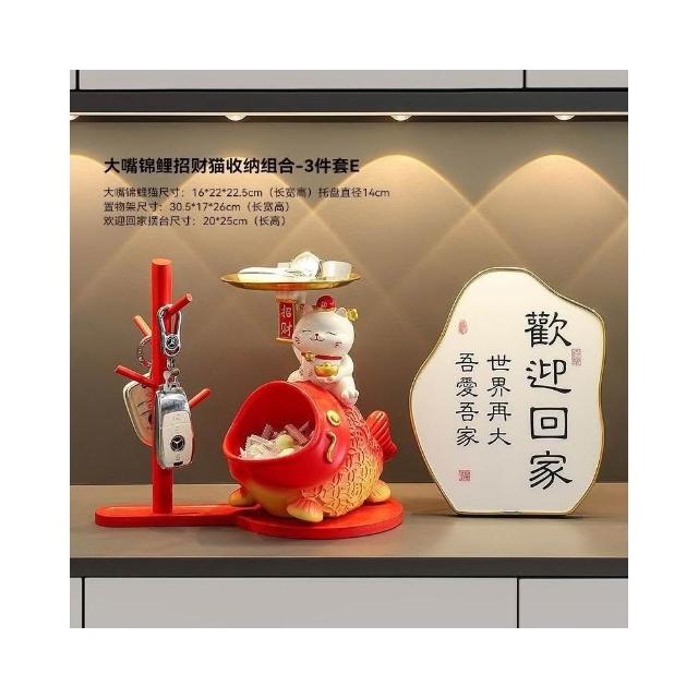 免運+上新特殺錦鯉招財貓入戶進門鑰匙收納玄關擺件新年家居裝飾品喬遷新居禮品鑰匙收納 輕奢 家居 裝飾品 擺設擺飾