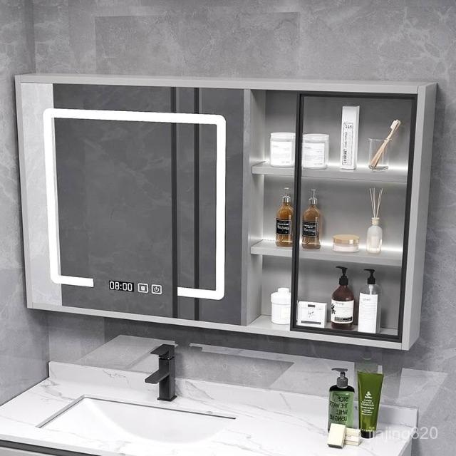 破損補寄/免運智能浴室鏡櫃掛墻式帶背光防霧衛生間鏡子置物架單獨收納一體櫃浴室鏡櫃 浴室鏡 收納櫃 洗浴鏡 掛牆式鏡麵櫃