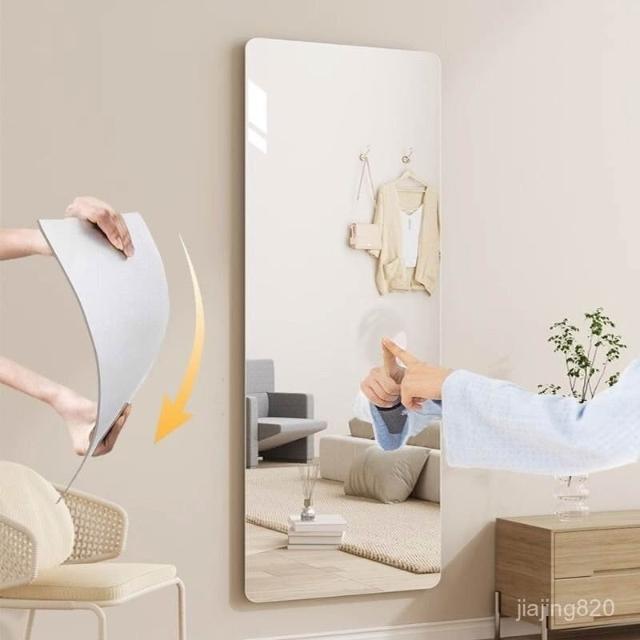 破損補寄/免運輕奢亞剋力軟鏡子貼墻自粘門後衣櫃掛墻全身鏡免打孔穿衣鏡高清 鏡子 試衣鏡 全身鏡 壓剋力鏡子 軟鏡子