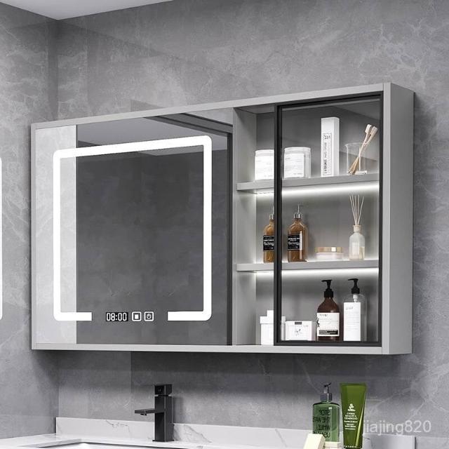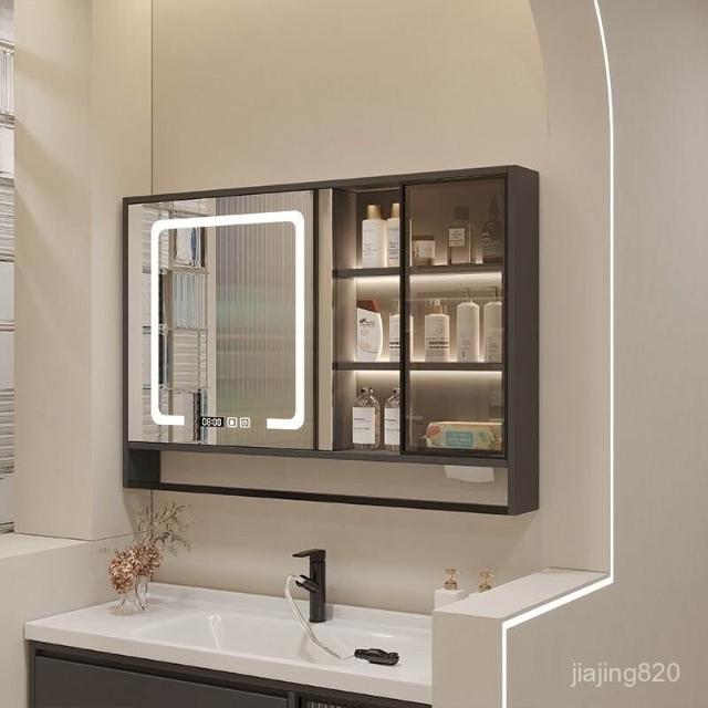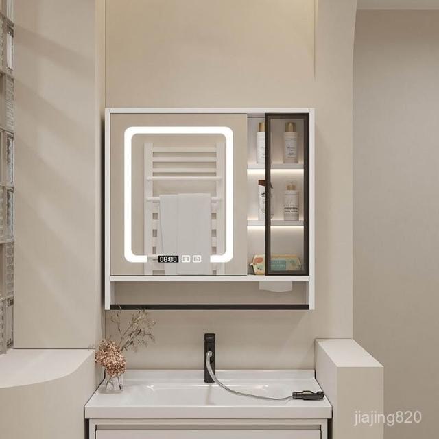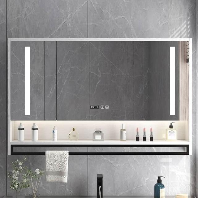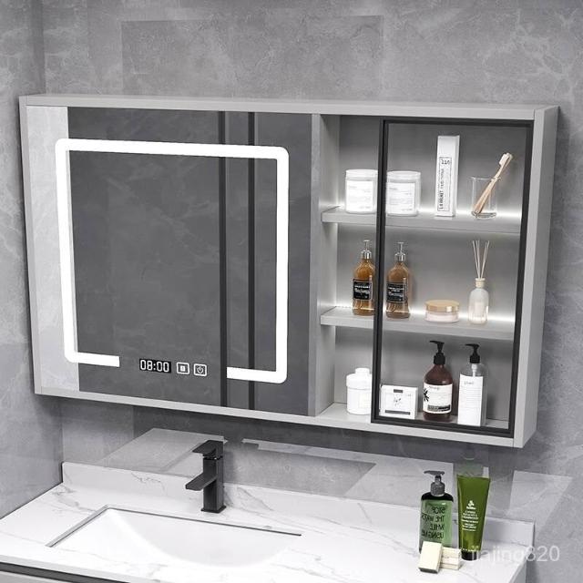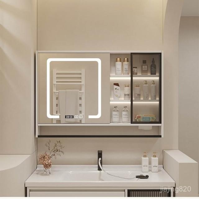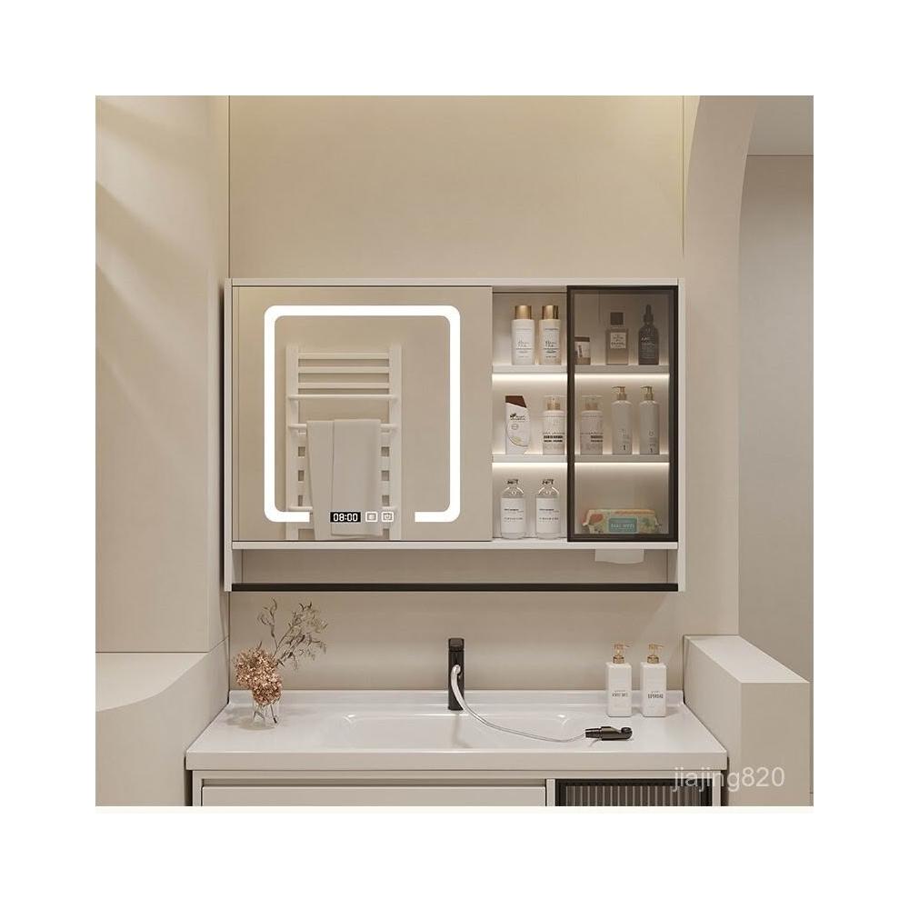 破損補寄/免運智能浴室鏡櫃掛墻式燈光除霧毛巾桿紙巾口置物架單獨收納一體櫃浴室鏡櫃 浴室鏡 收納櫃 洗浴鏡 掛牆式鏡麵櫃