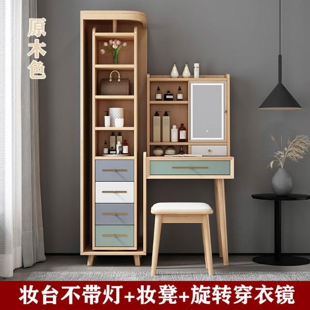 實木梳妝臺全身鏡一體輕奢化妝桌臥室現代簡約穿衣鏡化妝臺收納櫃