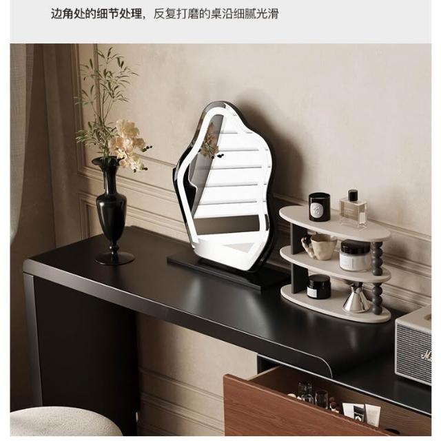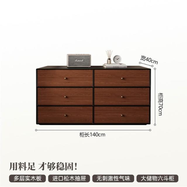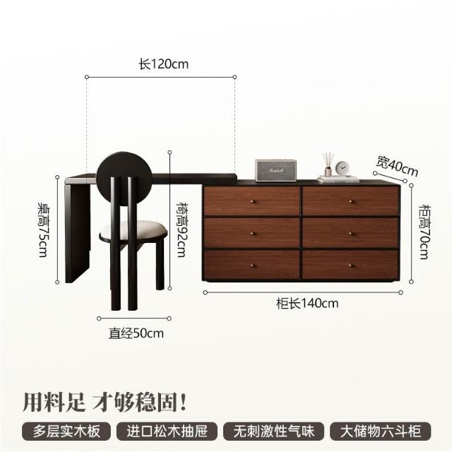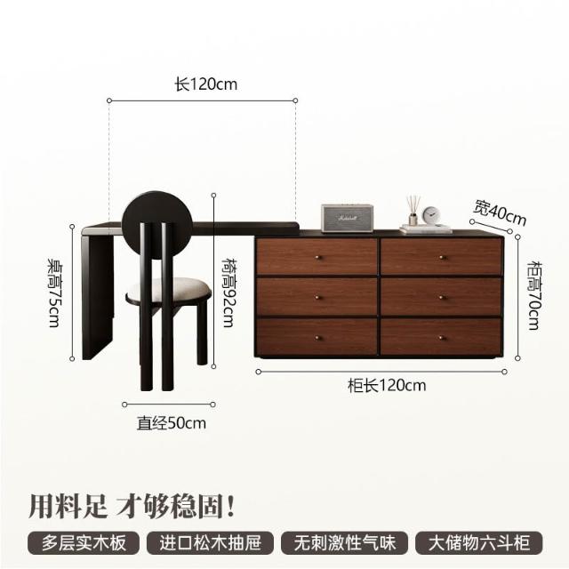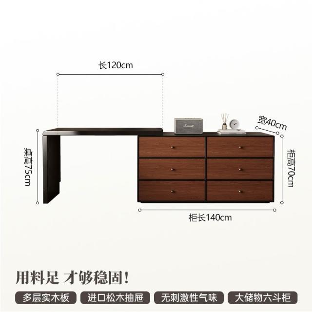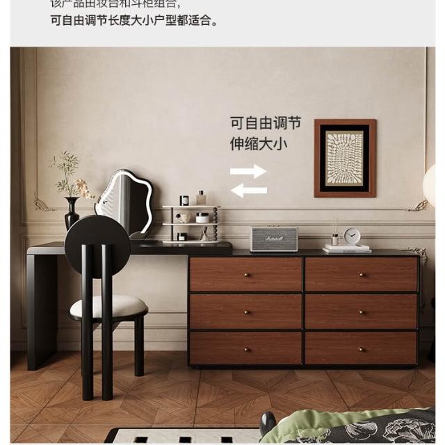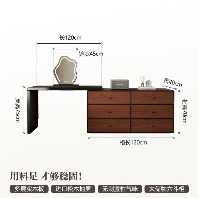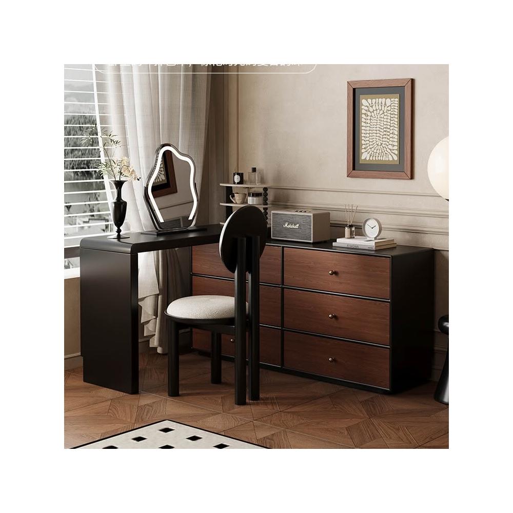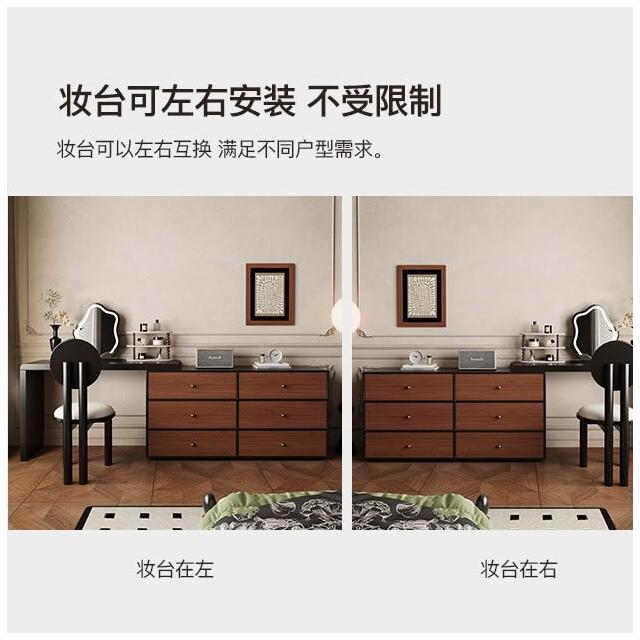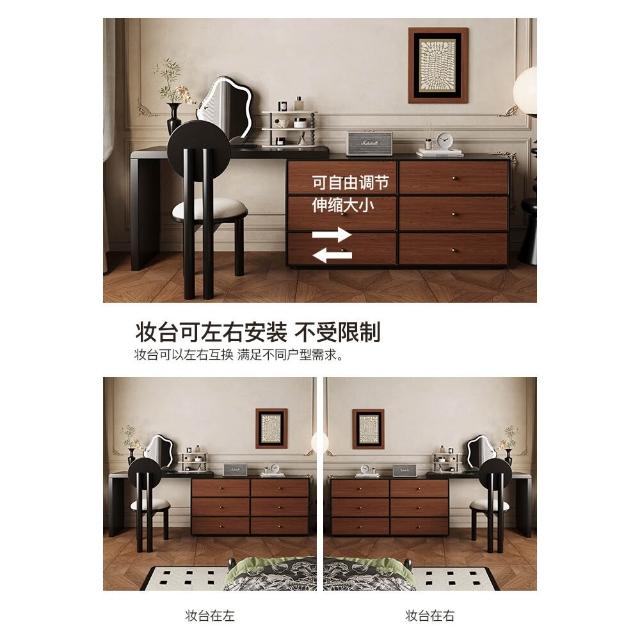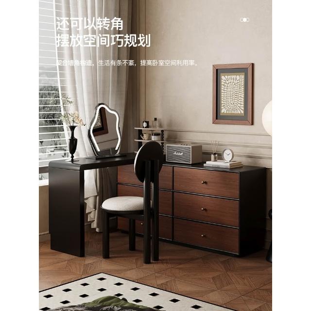 裳曄梳妝臺臥室鬥櫃一體床尾收納櫃現代衚桃木色中古風實木化妝桌