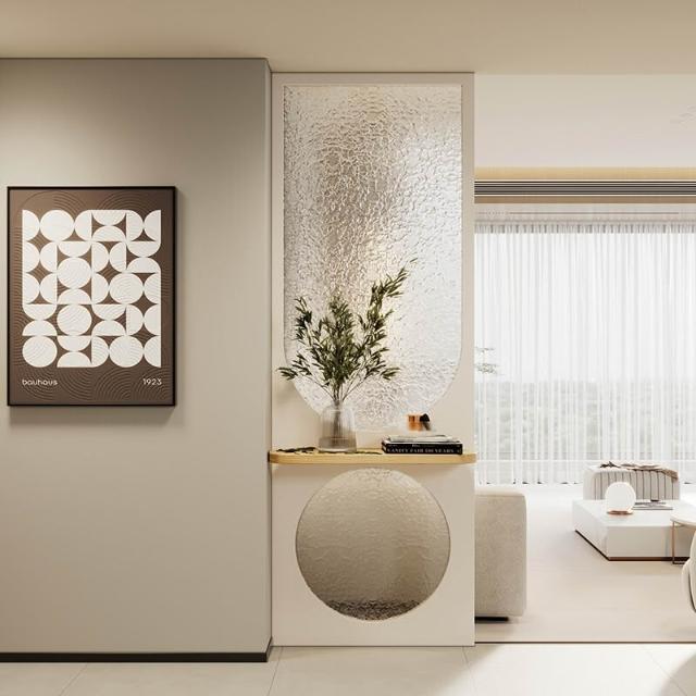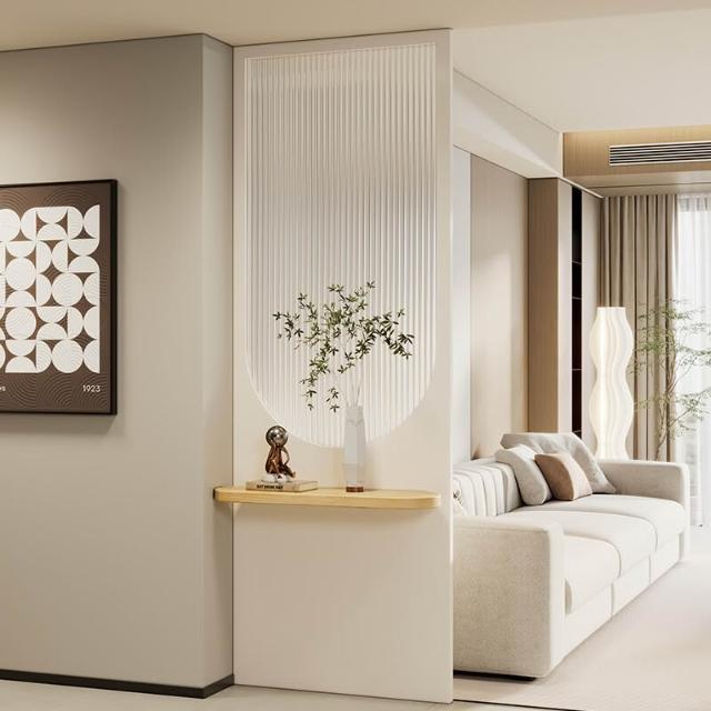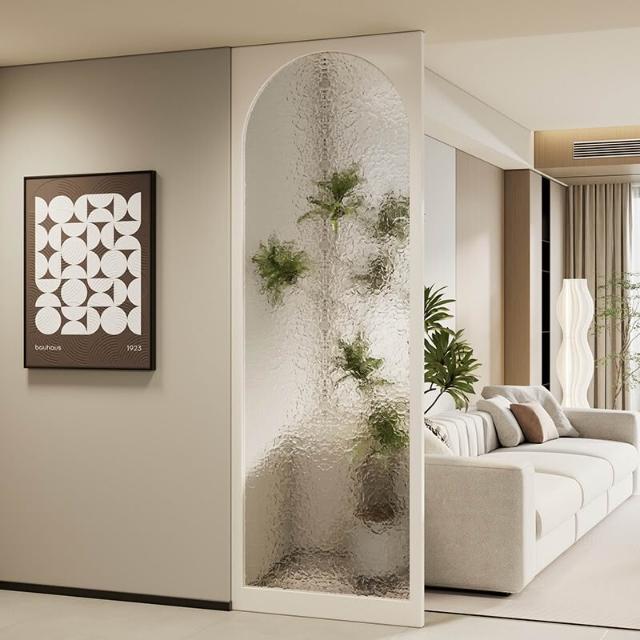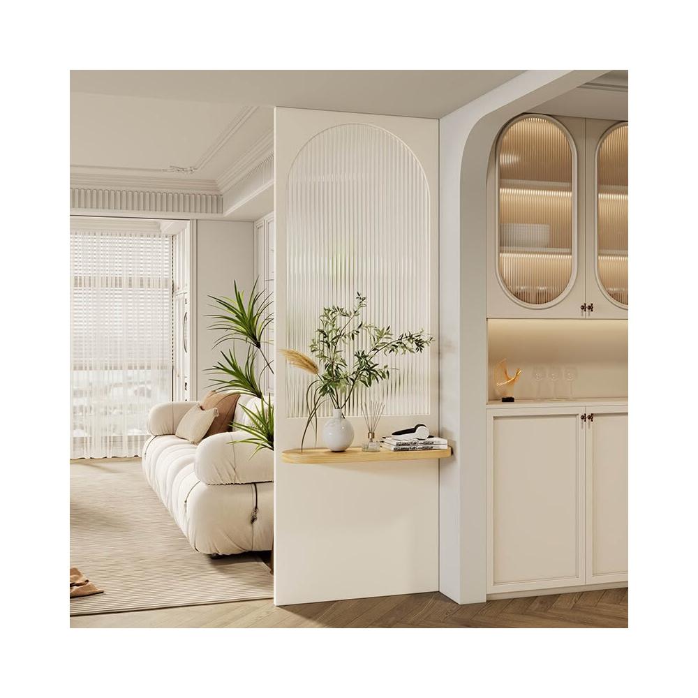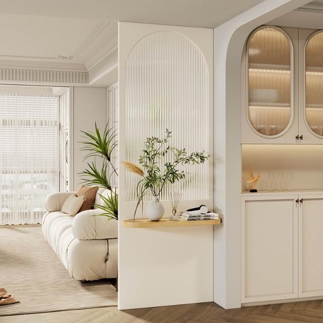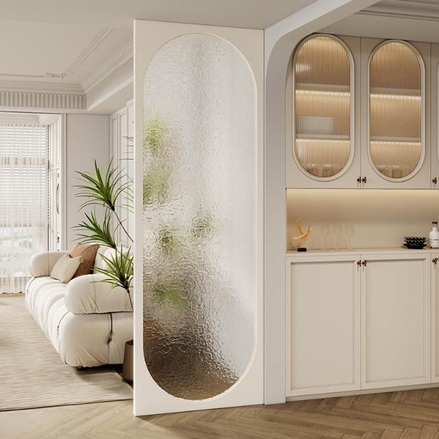 法式奶油風長虹玻璃屏風隔斷 客廳2025新款實木屏風 入戶玄關簡約玻璃屏風