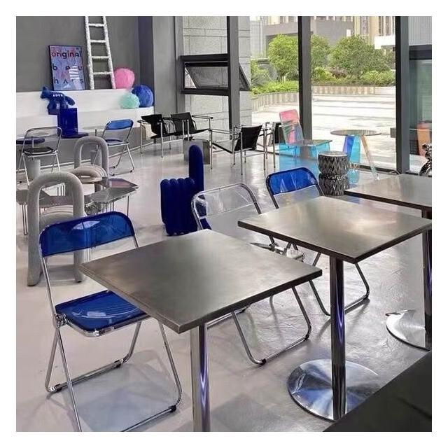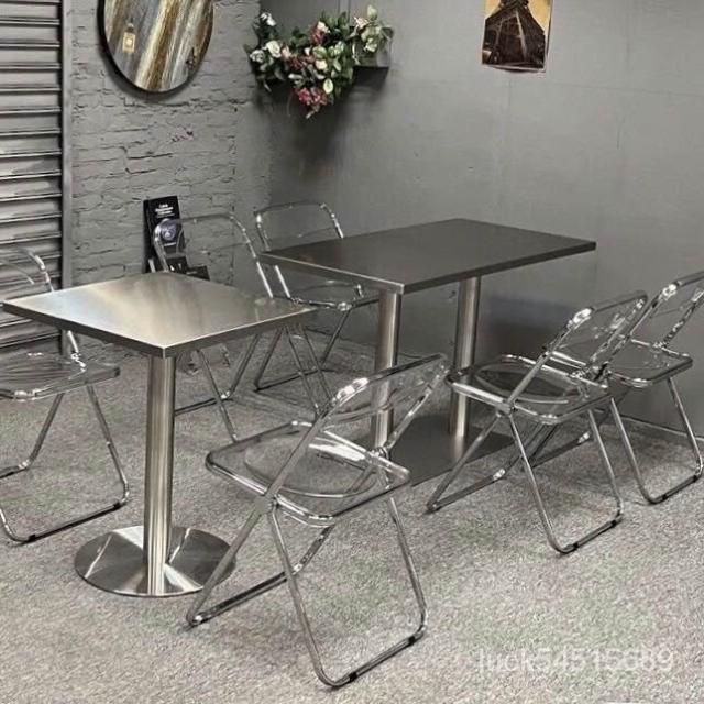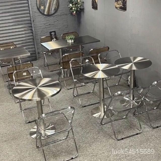 破損補發 免費開票定製工業風不銹鋼桌子正方形陽臺金屬洽談鐵藝網紅咖啡店餐廳桌椅 X6DN