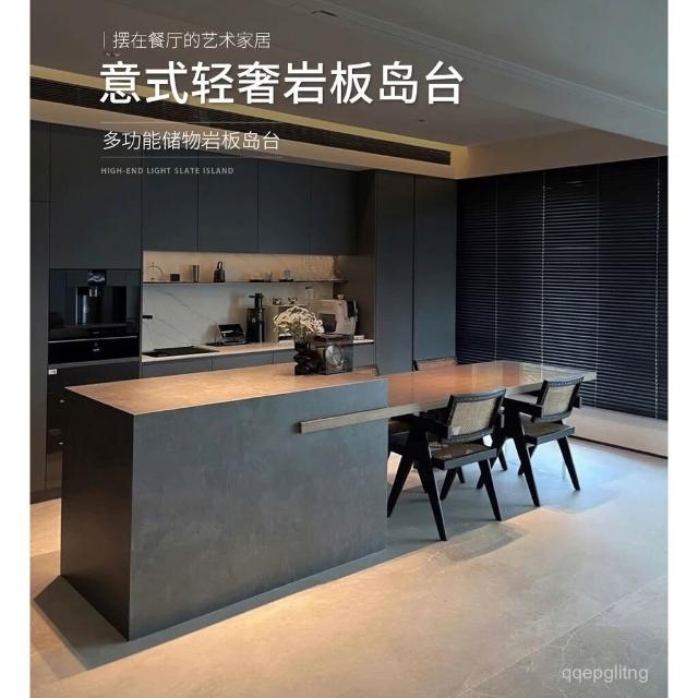 免運 可上門安裝 伸縮島臺餐桌一體多功能家用廚房吧臺定製大戶型輕奢巖闆中島臺 伸縮餐桌 旋轉餐桌