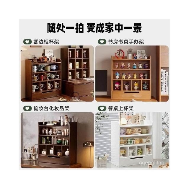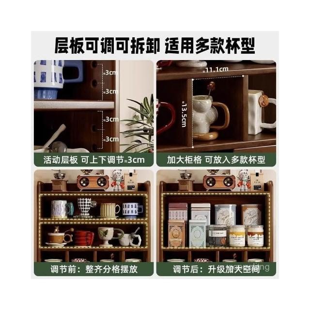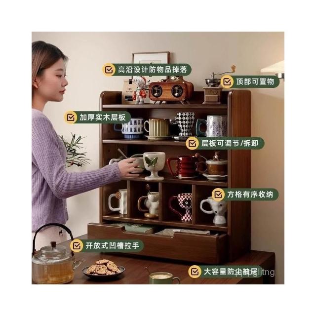 免運 新品上市 實木防塵杯架茶具收納櫃複古茶杯水杯置物架桌麵杯子咖啡杯架臺麵