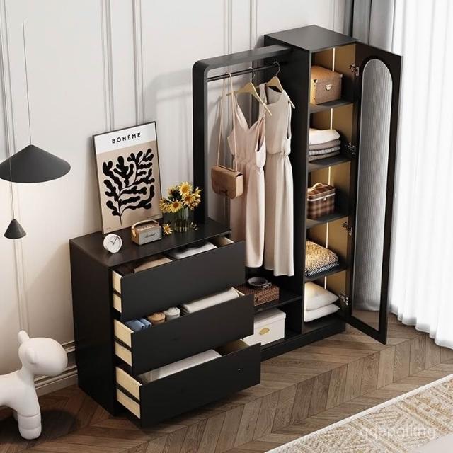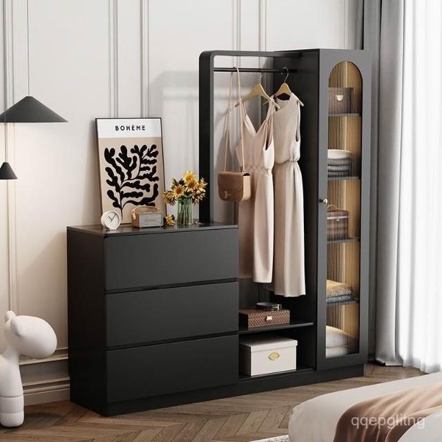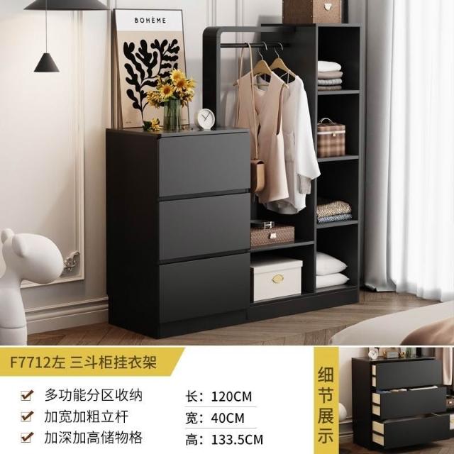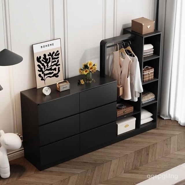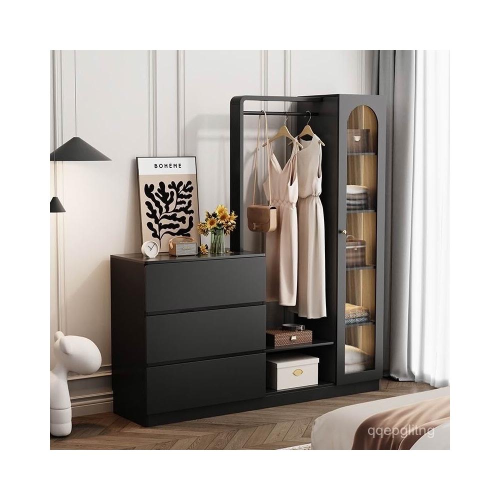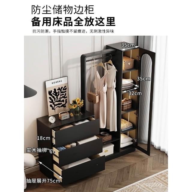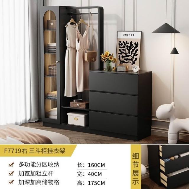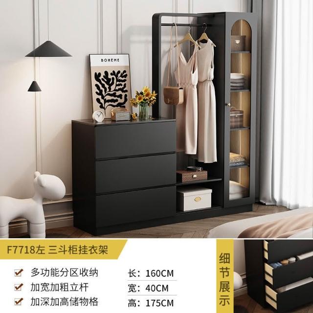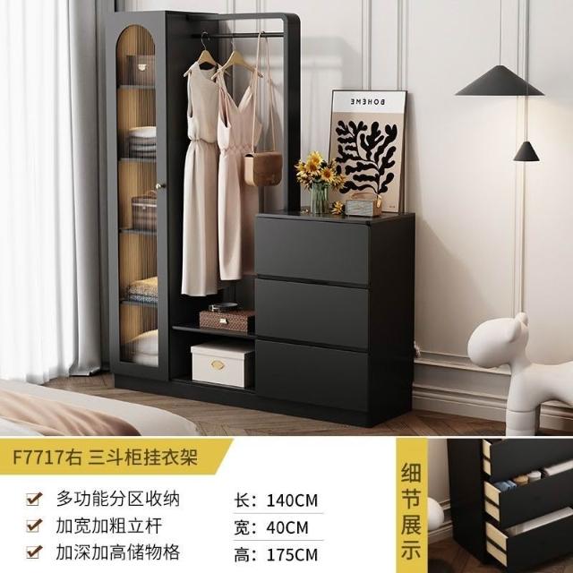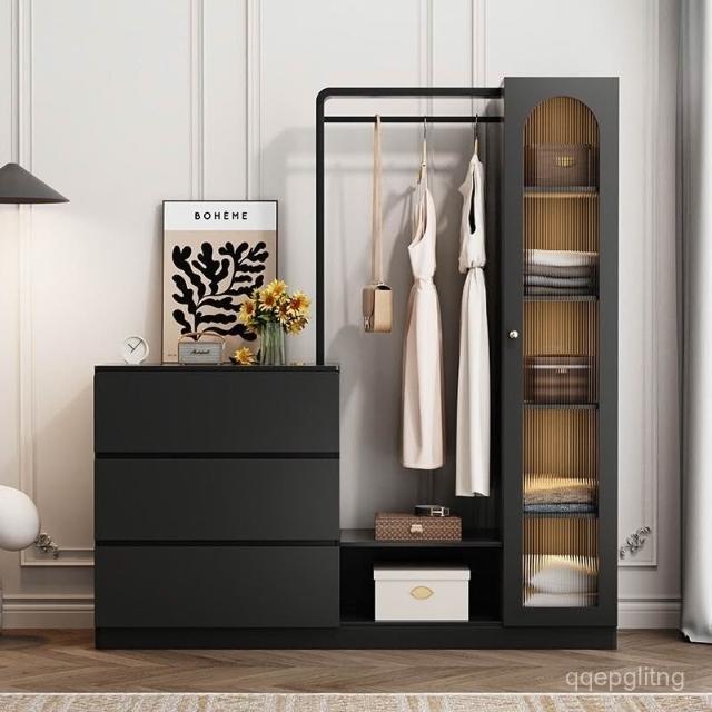 免運 收納衣架 法式複古鬥櫃臥室小戶型儲物收納櫃床尾掛衣架一體客廳輕奢置物櫃 衣架 衣帽架 開放式衣架 掛衣架 開放衣櫃