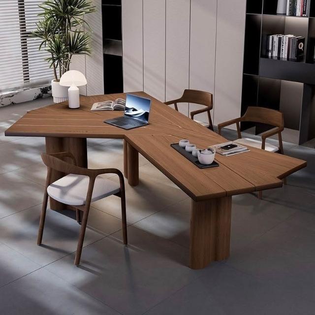 免運 輕奢簡約#書桌 輕奢風極簡異形辦公桌簡約現代實木電腦桌老闆桌設計師書桌工作臺 餐桌 會議桌 辦公桌 洽談桌