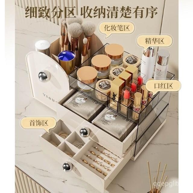 免運 精選#桌麵整理 家用化妝品桌麵收納盒高檔抽屜式水乳口紅收納整理盒桌麵首飾收納 桌上收納櫃 文件收納 化妝品收納