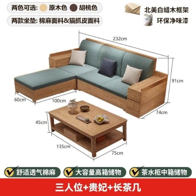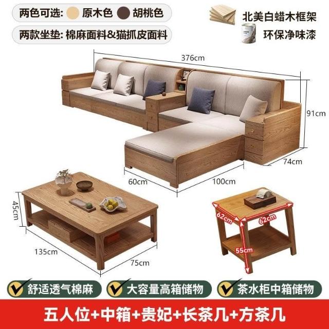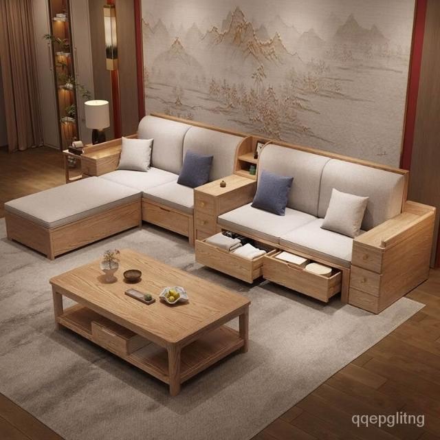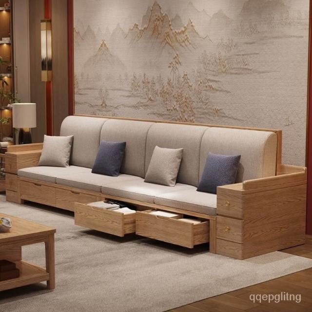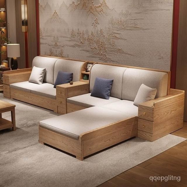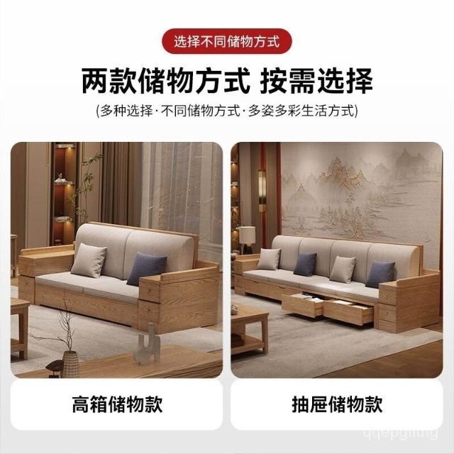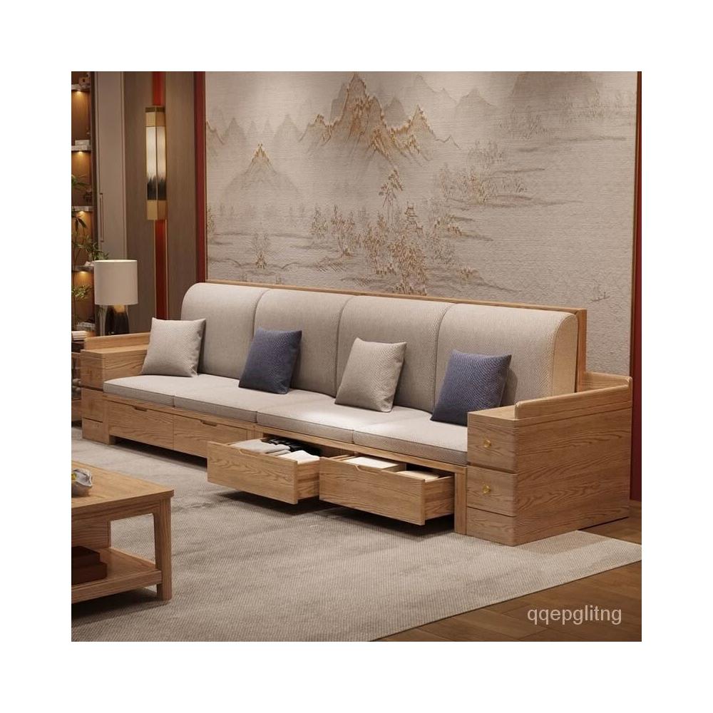 免運 上門安裝#可開發票 白蠟木實木沙發組閤布藝冬夏兩用貴妃客廳高級新中式原木儲物沙發 實木沙發