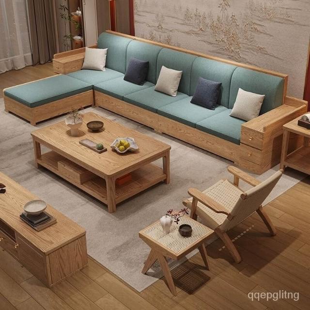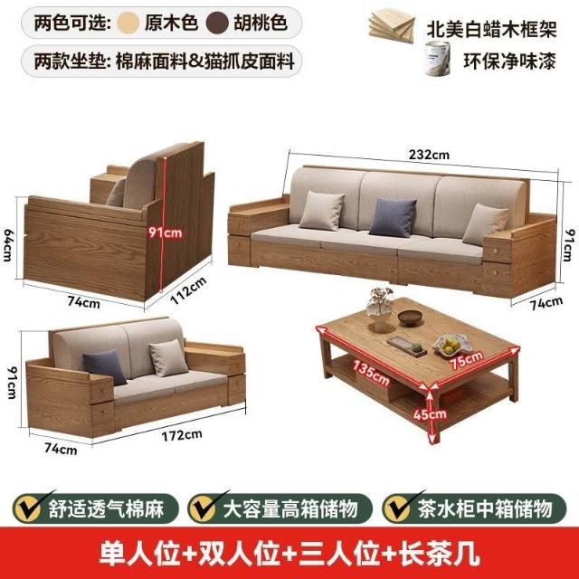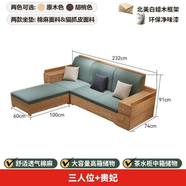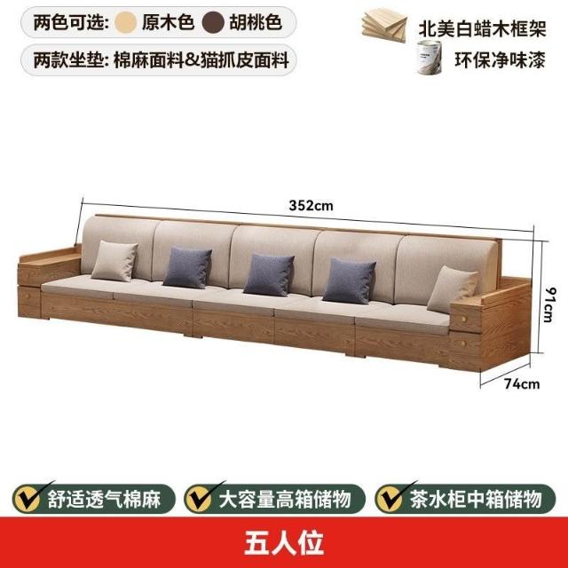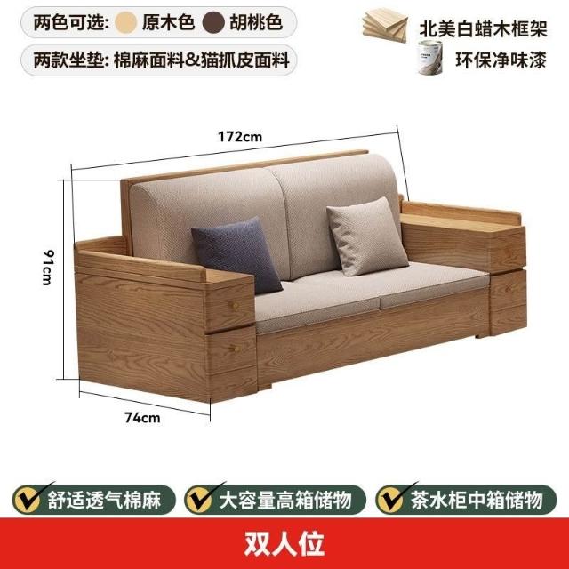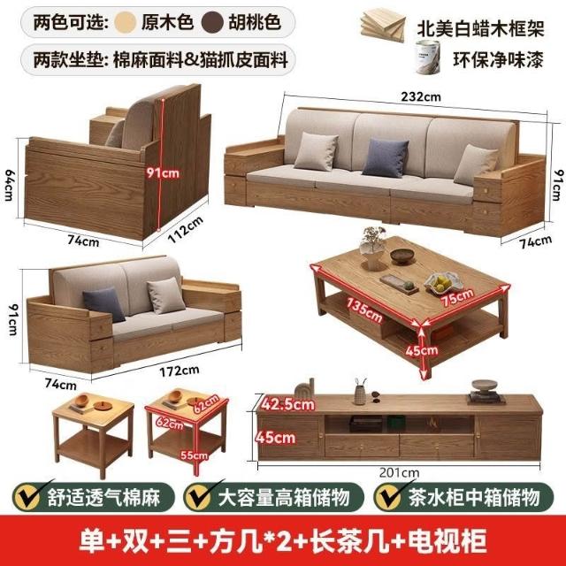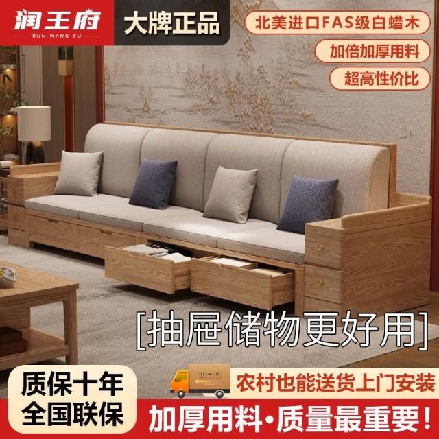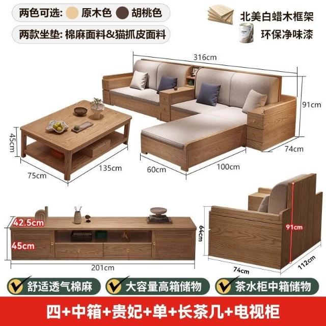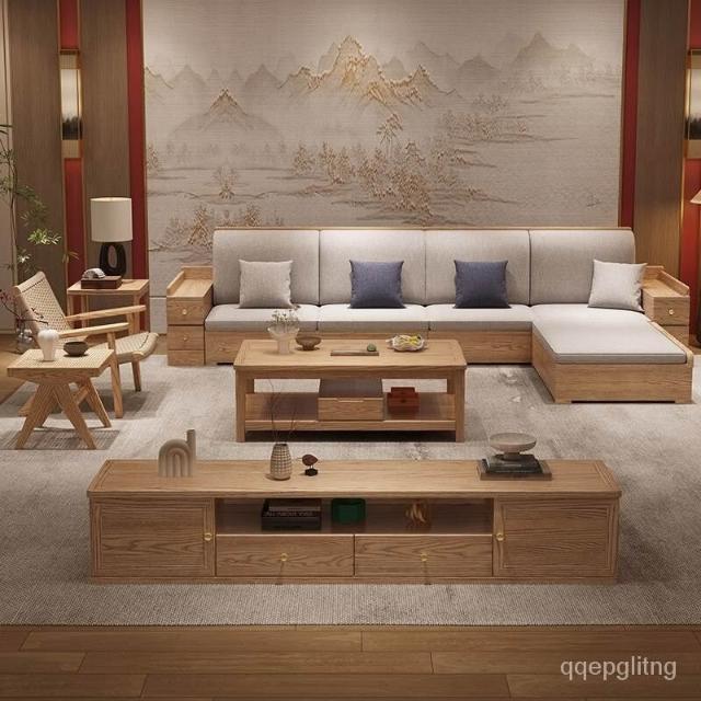 免運 上門安裝#可開發票 白蠟木實木沙發組閤布藝冬夏兩用貴妃客廳高級新中式原木儲物沙發 實木沙發
