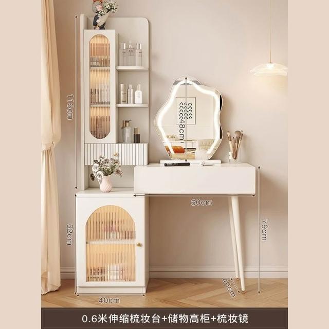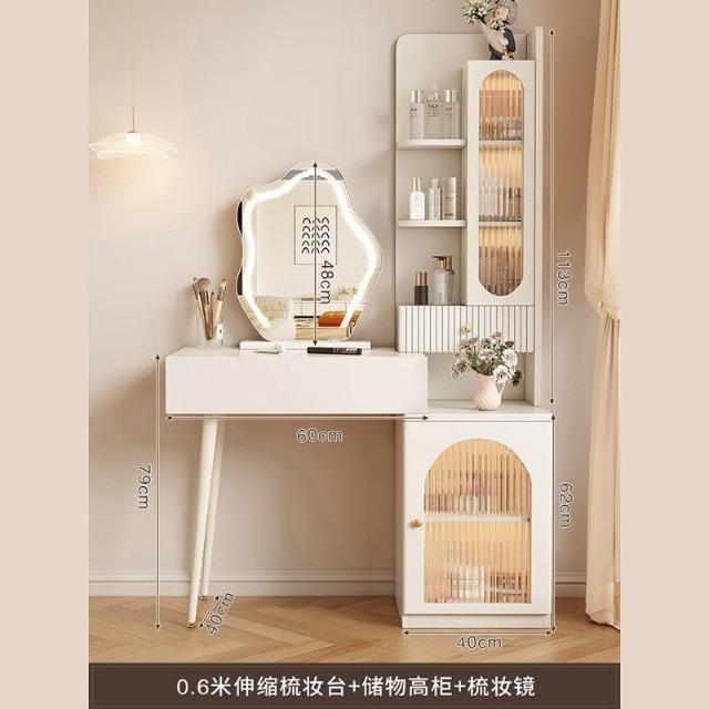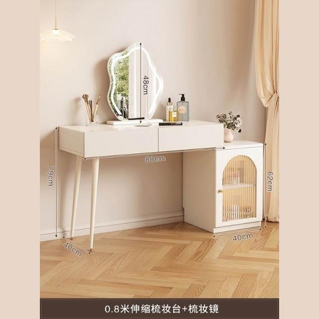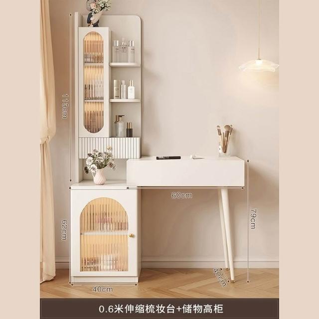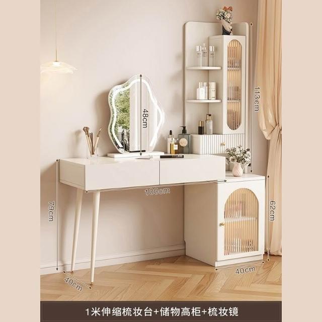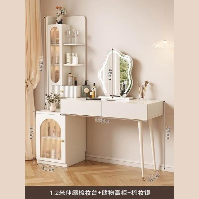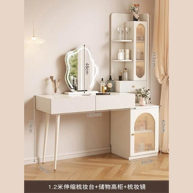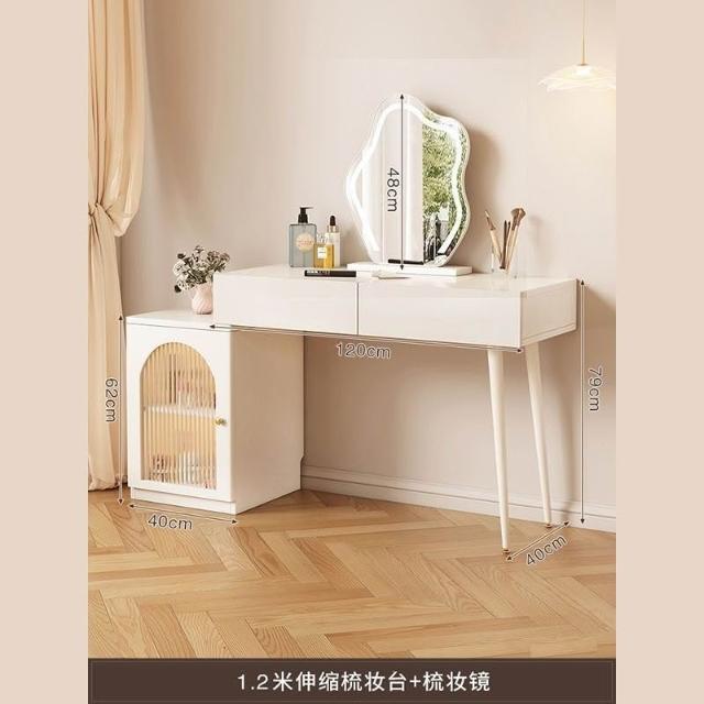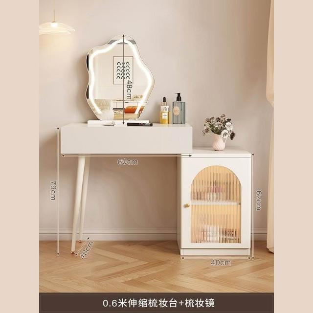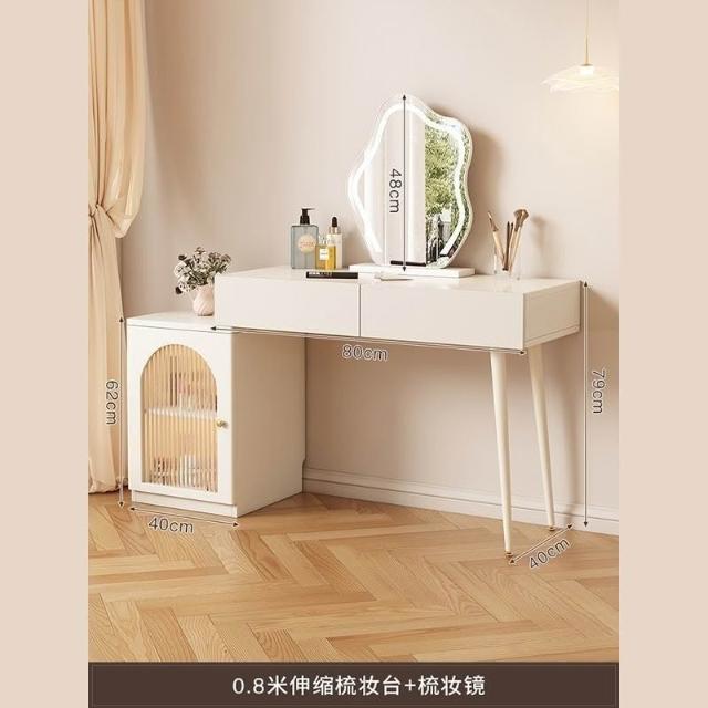 免運 銀鏡照妝臺 梳妝臺臥室化妝臺化妝桌組閤一體收納儲物櫃法式輕奢可伸縮梳妝櫃梳妝桌 化妝櫃 化妝臺 梳妝臺 化妝桌