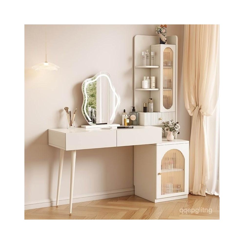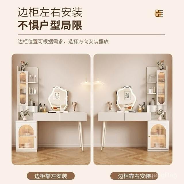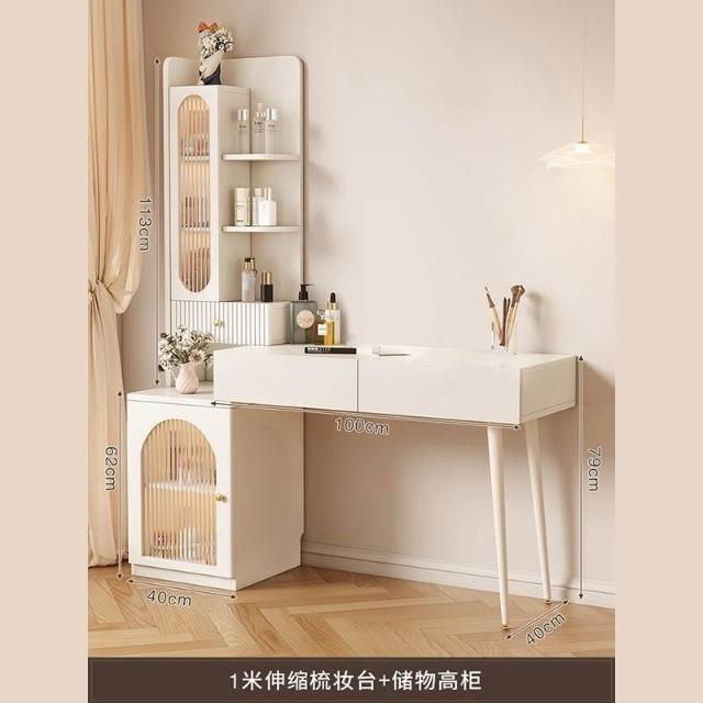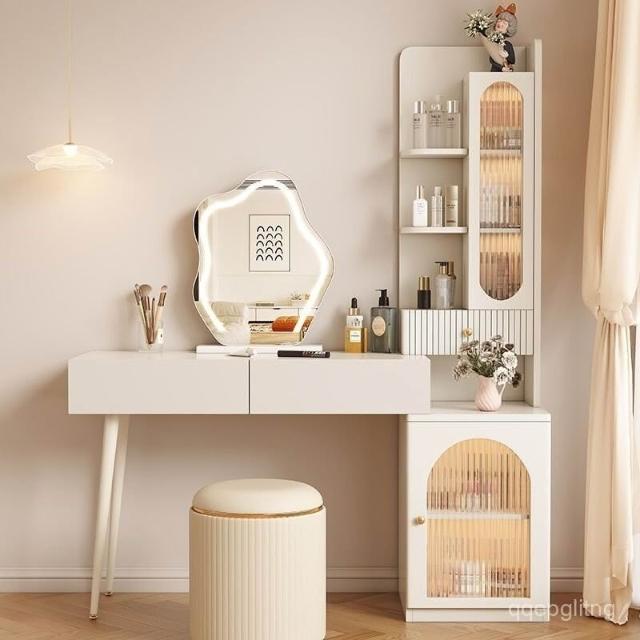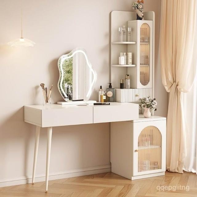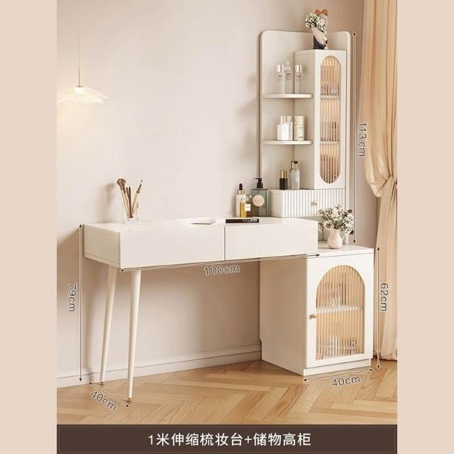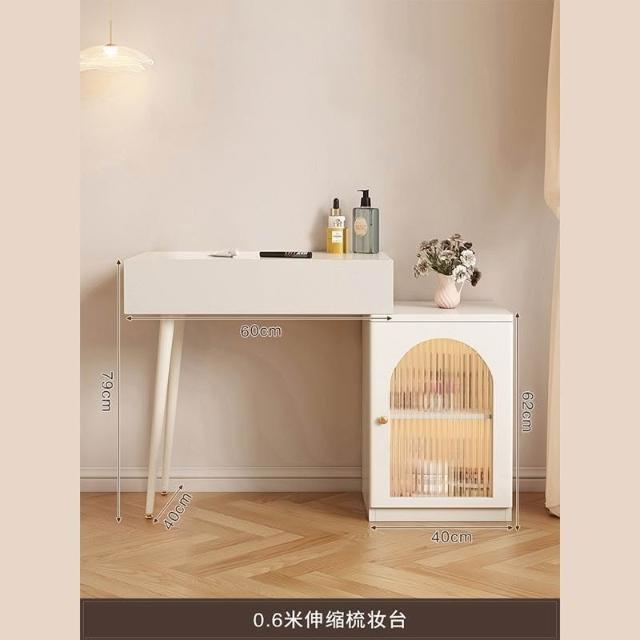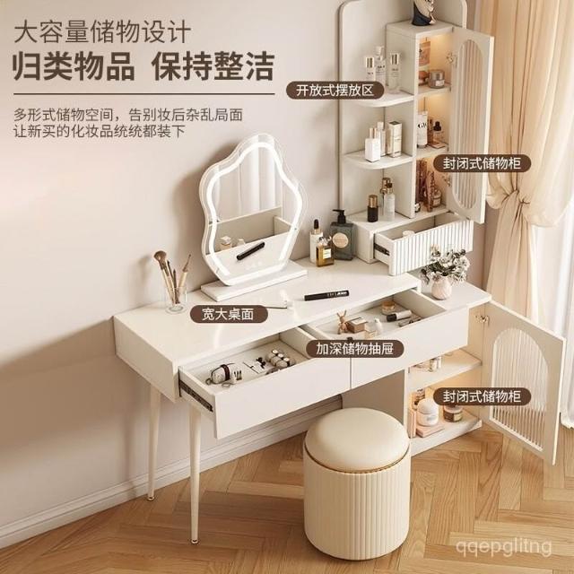 免運 銀鏡照妝臺 梳妝臺臥室化妝臺化妝桌組閤一體收納儲物櫃法式輕奢可伸縮梳妝櫃梳妝桌 化妝櫃 化妝臺 梳妝臺 化妝桌
