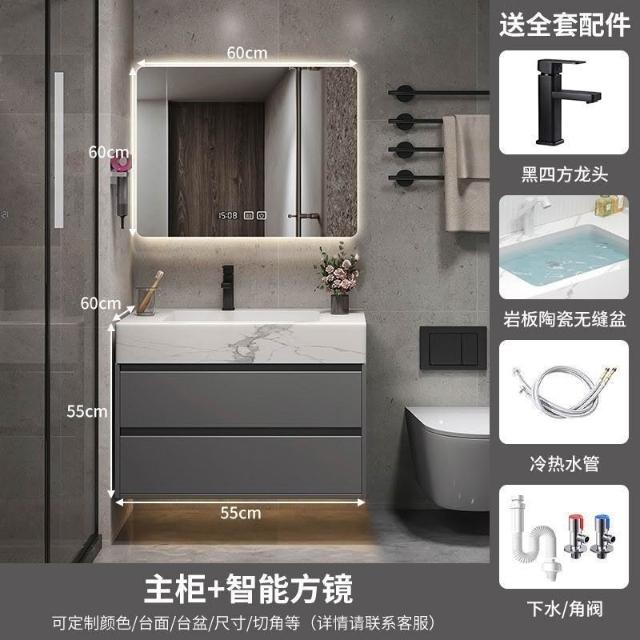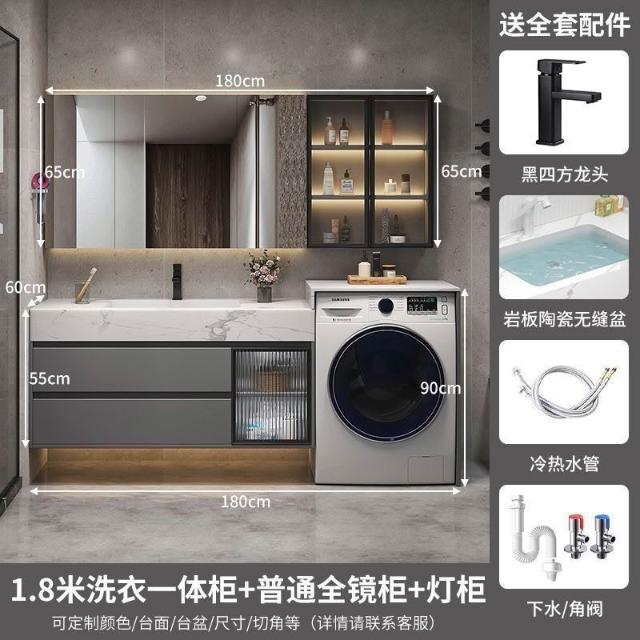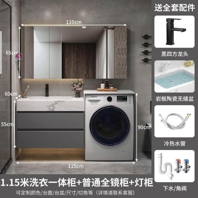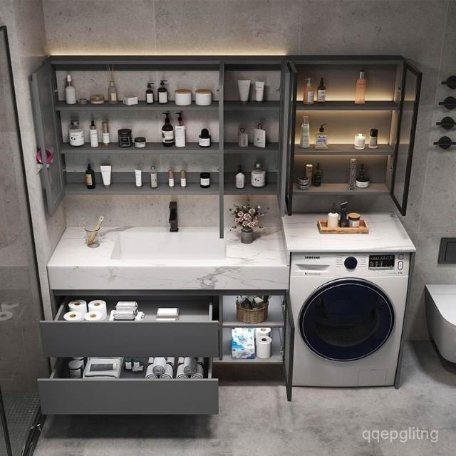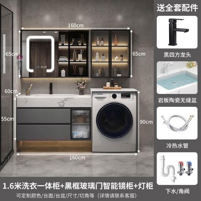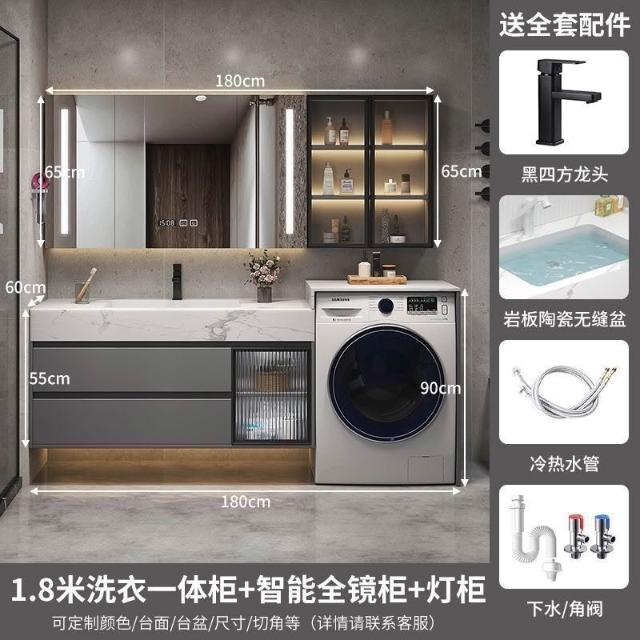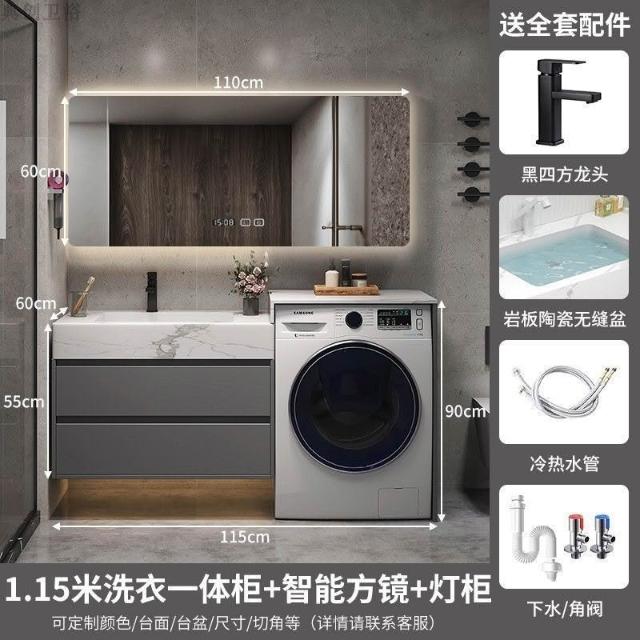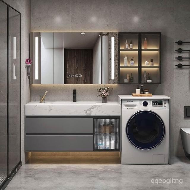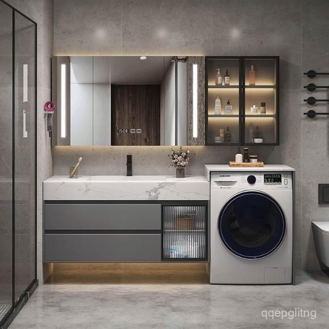 免運 新品上市 巖闆陶瓷無縫盆洗衣一體櫃衛生間洗臉洗漱洗手臺盆浴室櫃智能鏡櫃