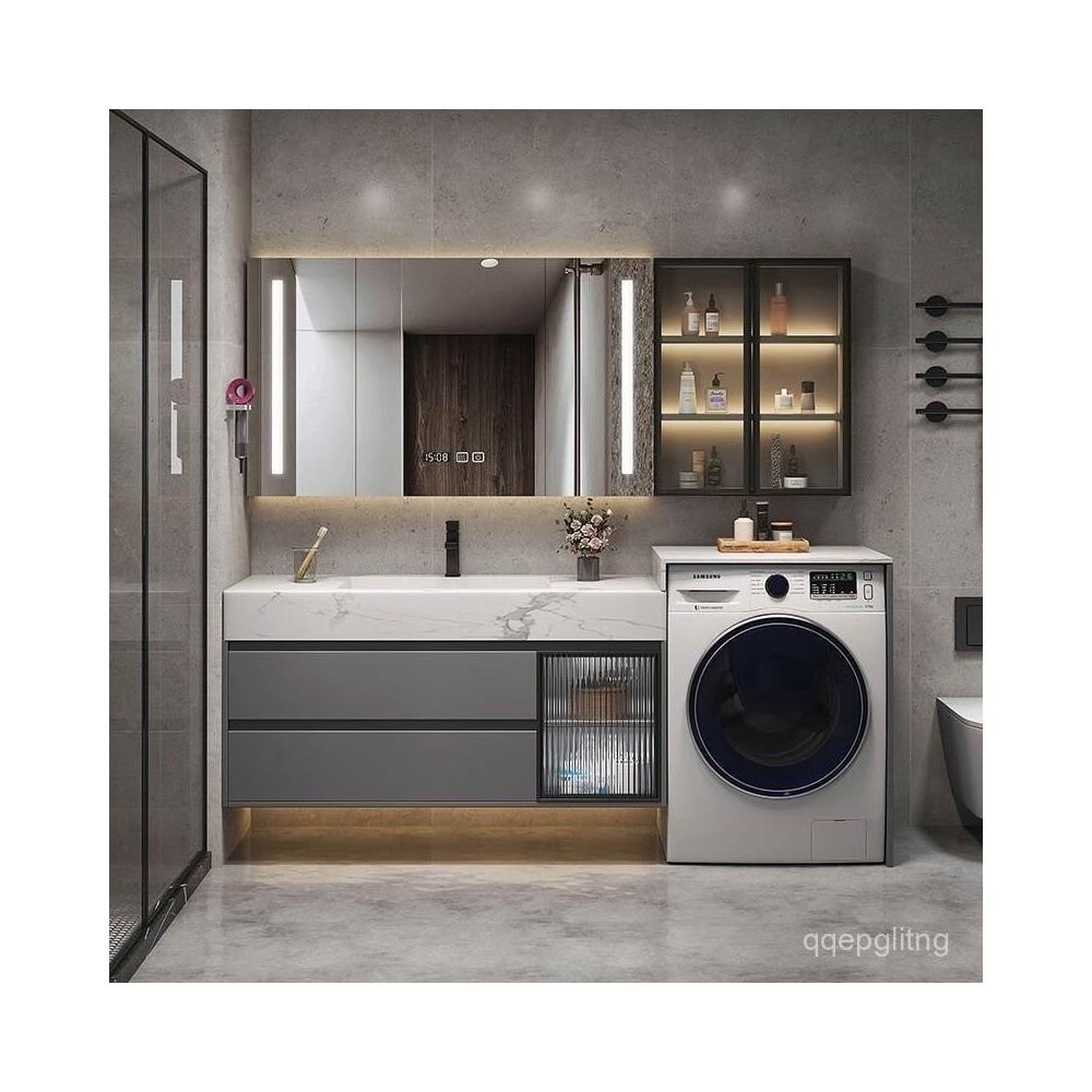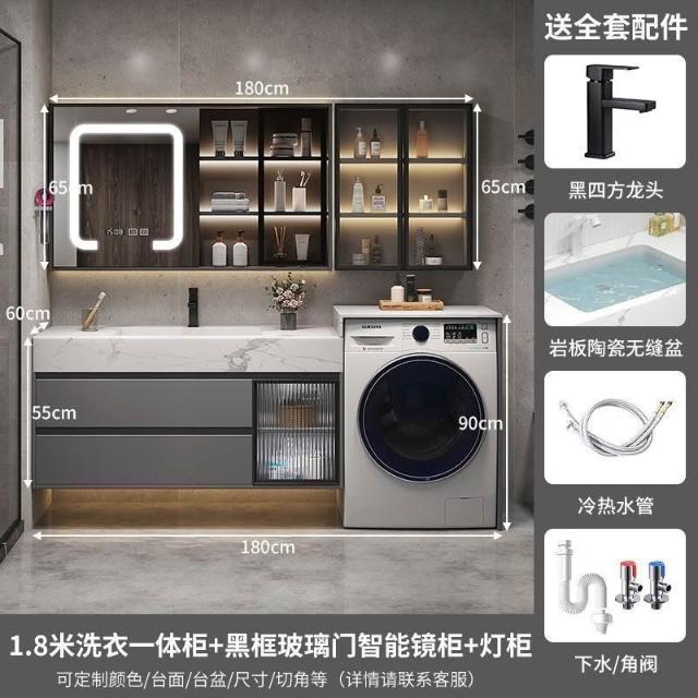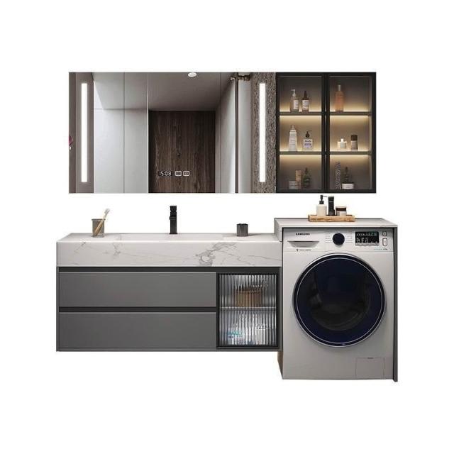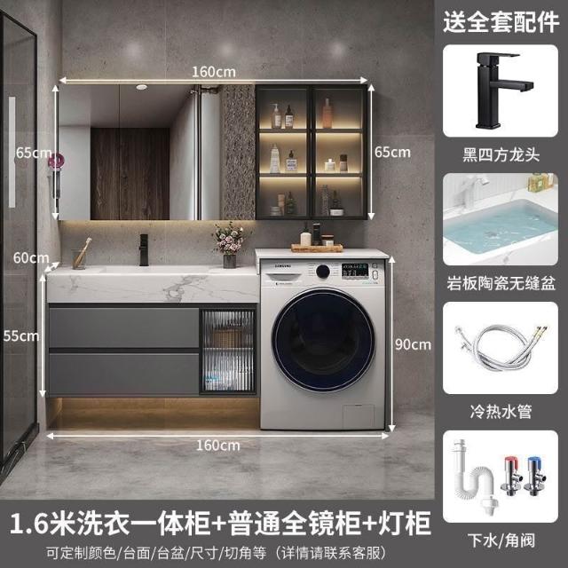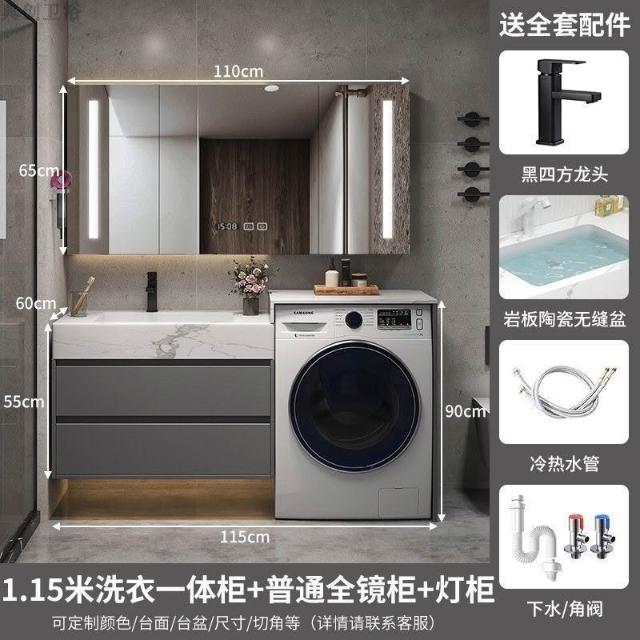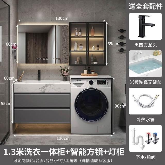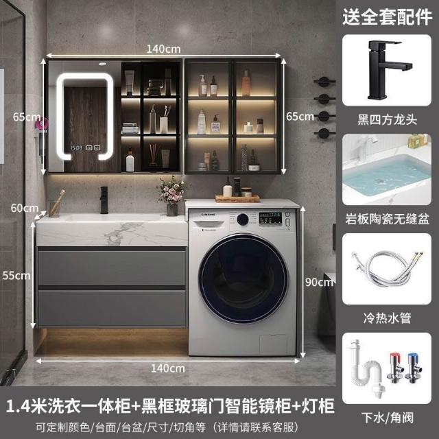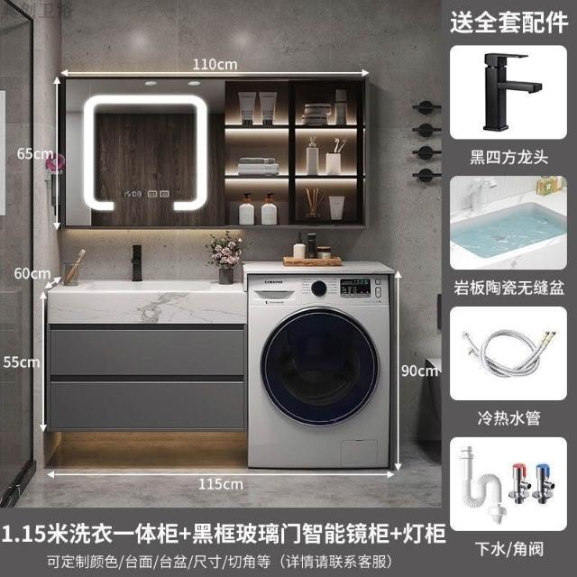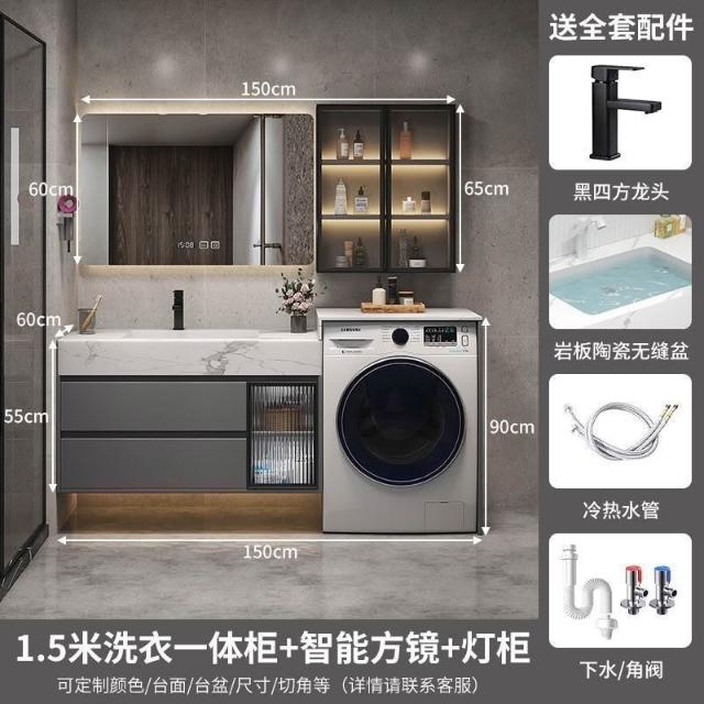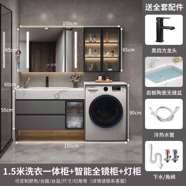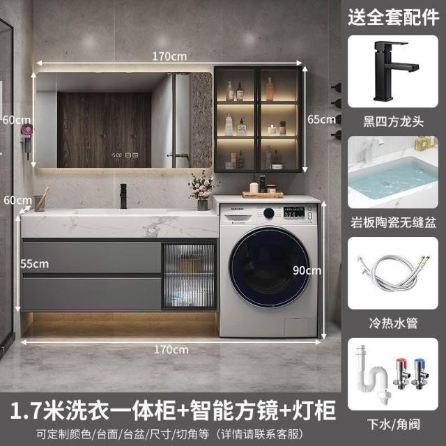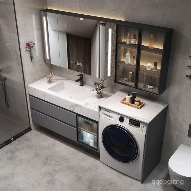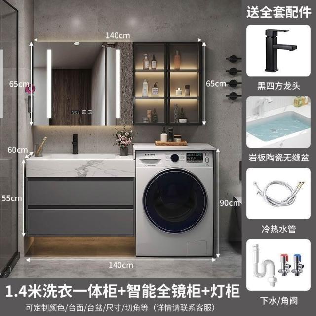 免運 新品上市 巖闆陶瓷無縫盆洗衣一體櫃衛生間洗臉洗漱洗手臺盆浴室櫃智能鏡櫃