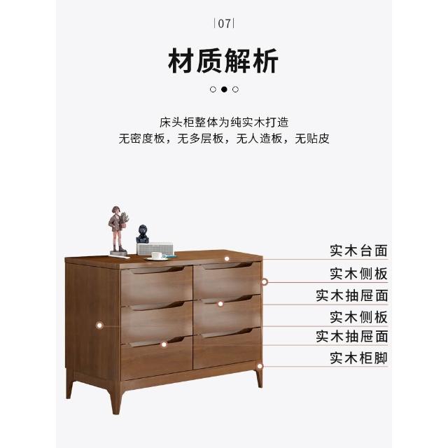 免運 破損補發 超大6抽純全實木家用床頭櫃臥室床邊櫃簡約現代80/70cm602023新款