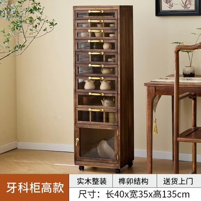 置物櫃 北美胡桃色實木牙科櫃落地茶具收納櫃抽屜中古文玩櫃首飾盒置物櫃