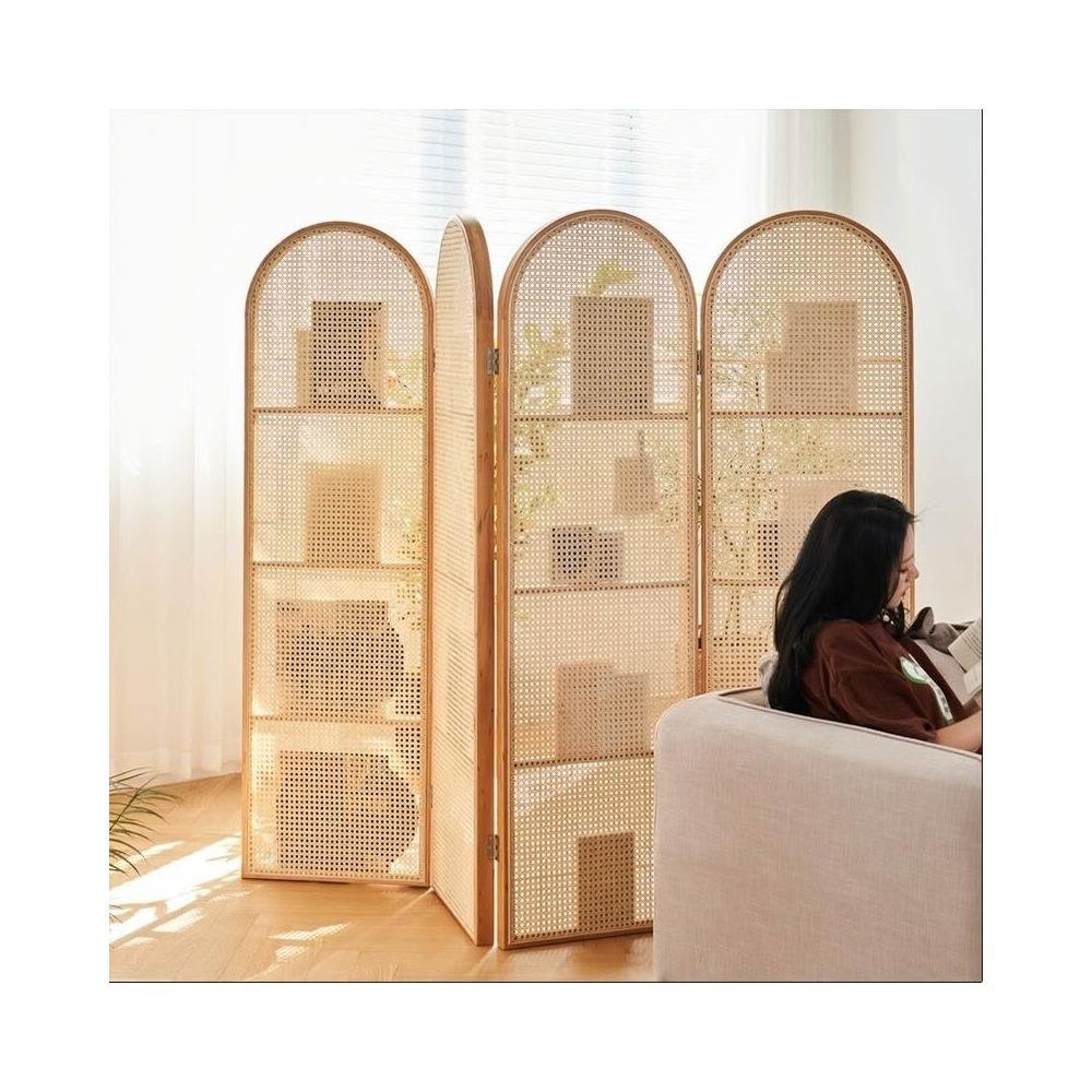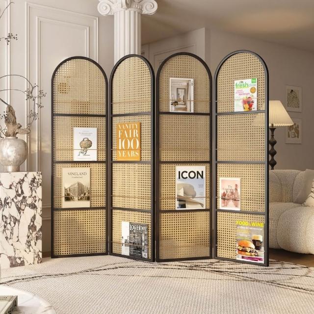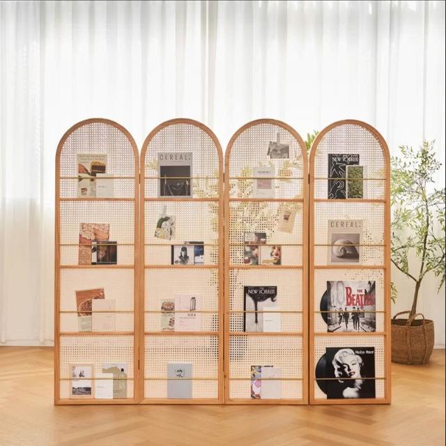 屏風日式藤編屏風隔斷客廳實木折疊可移動小戶型遮擋入戶簡約雜誌書架