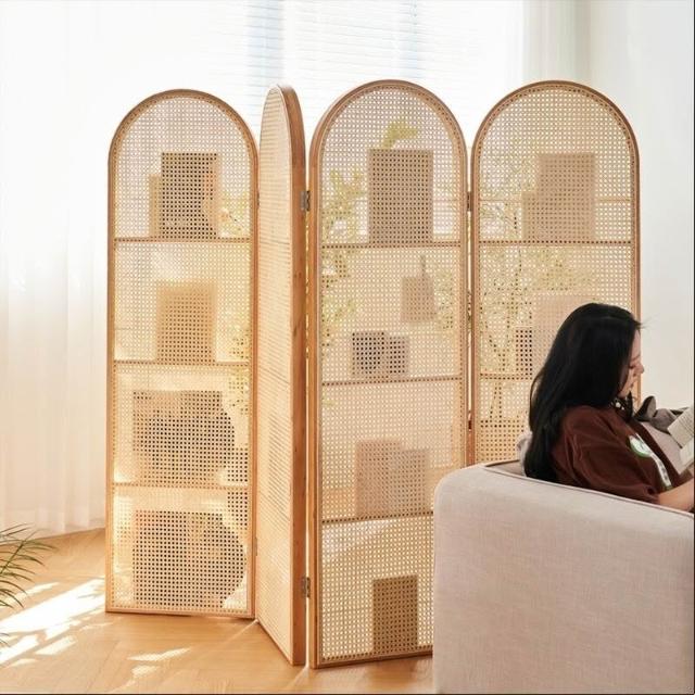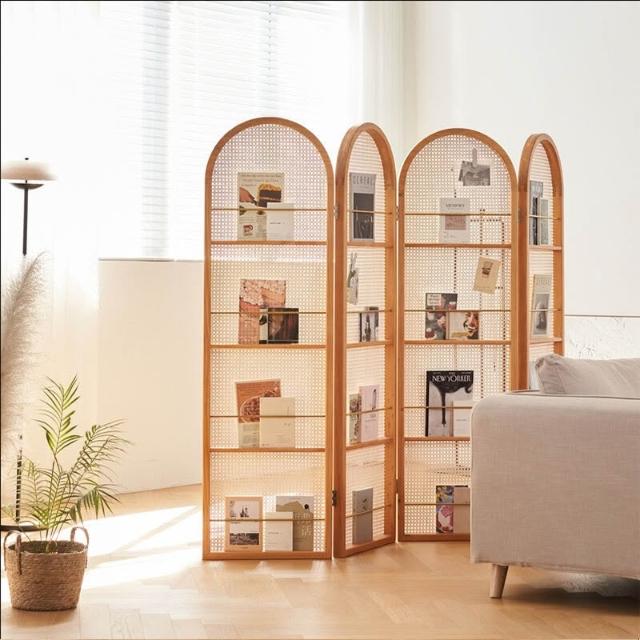 屏風日式藤編屏風隔斷客廳實木折疊可移動小戶型遮擋入戶簡約雜誌書架