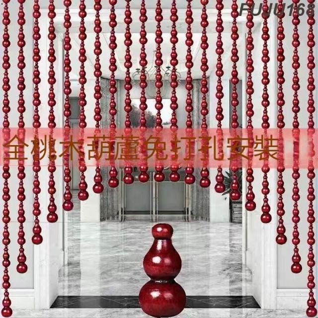 全桃木葫蘆珠簾廁所大門招財玄關風水門簾臥室過道客廳掛簾免打孔-