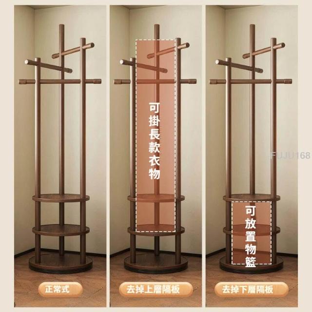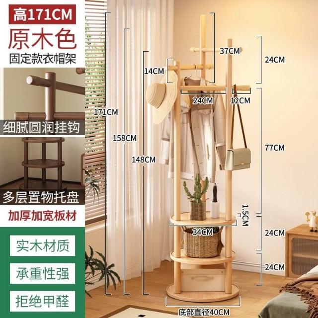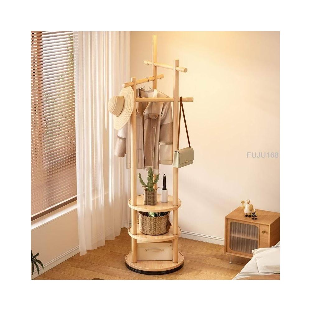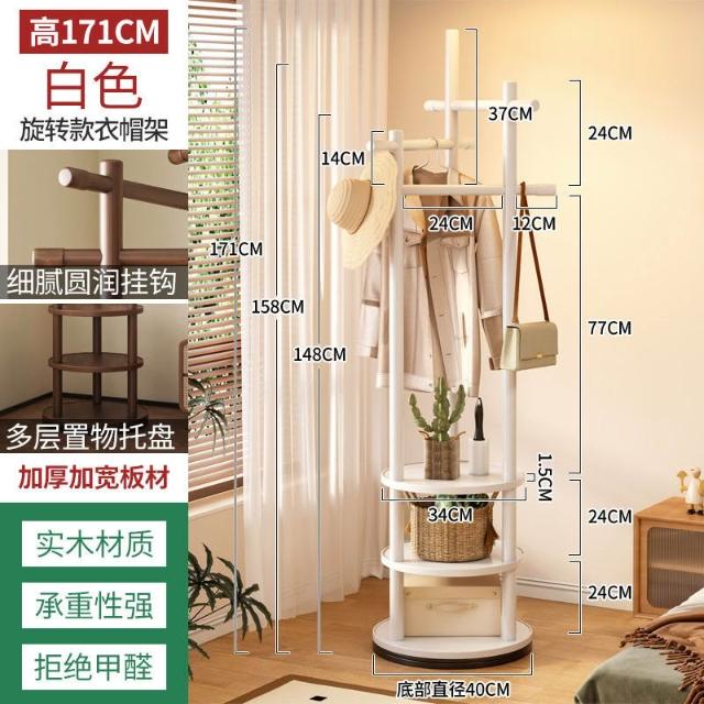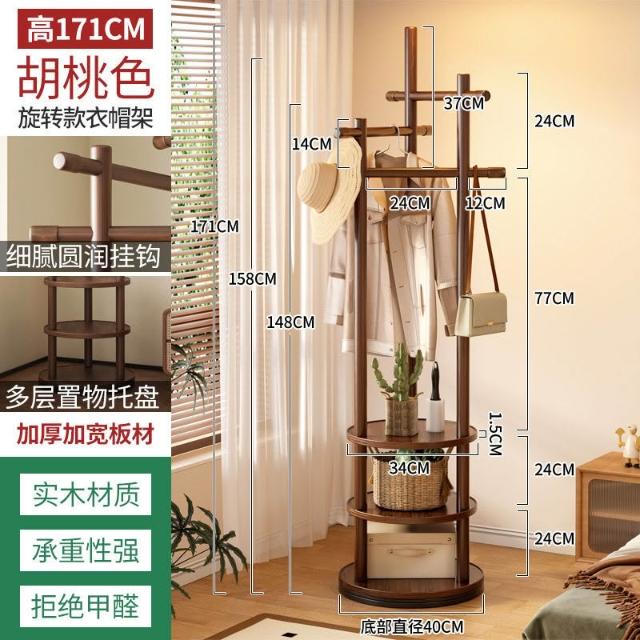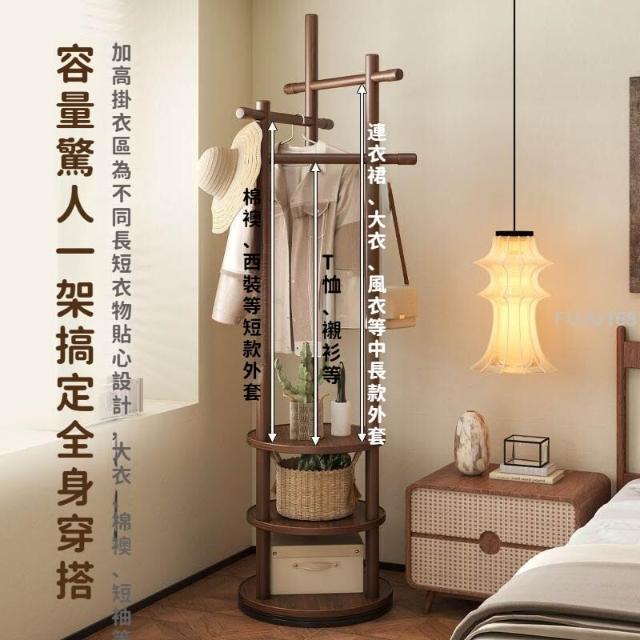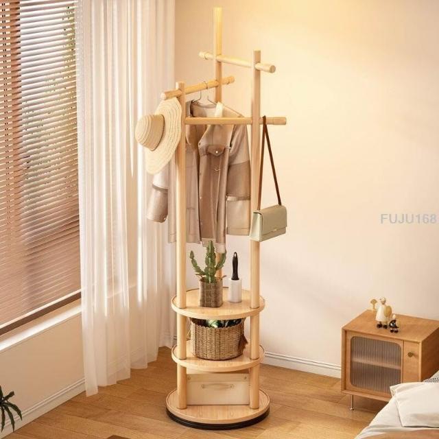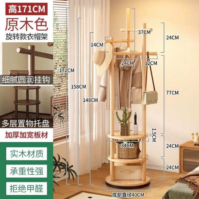 熱銷 旋轉實木衣帽架落地衣架簡易衣服臥室家用置物架立式架子掛衣架-