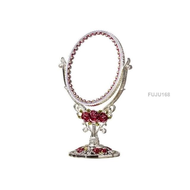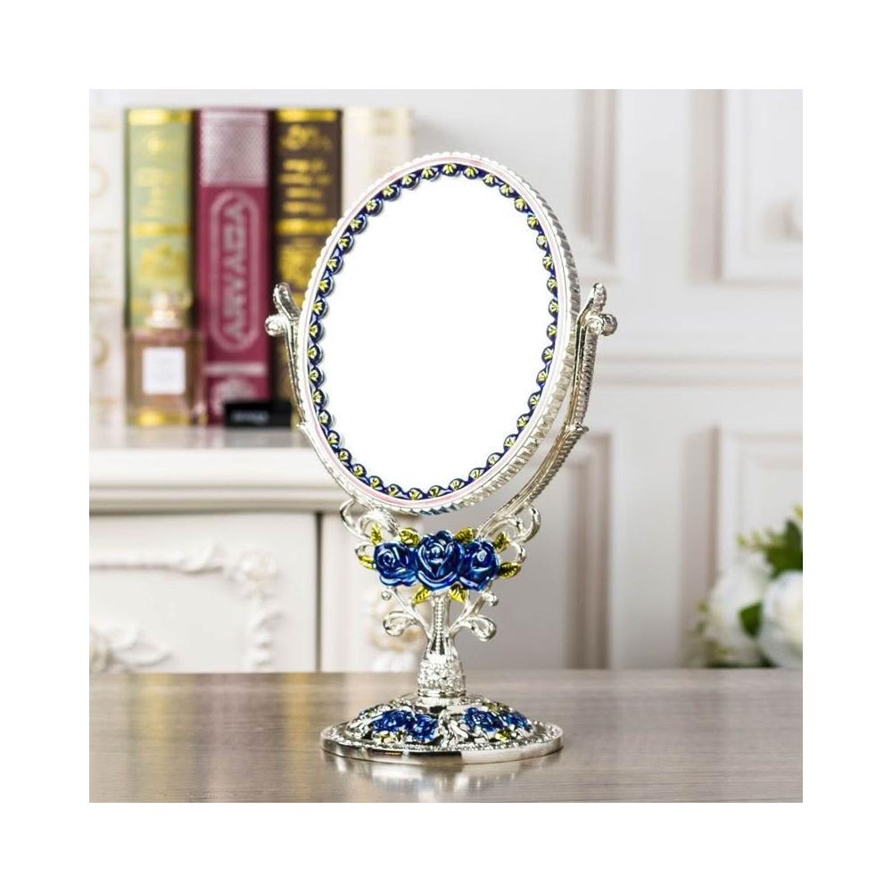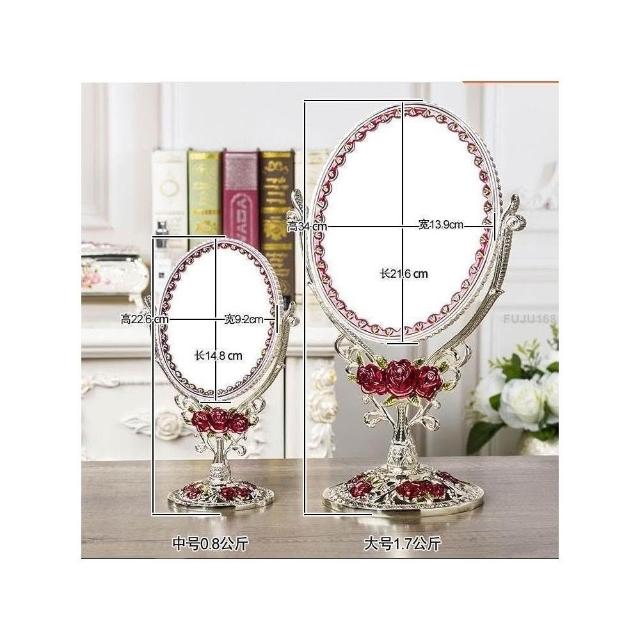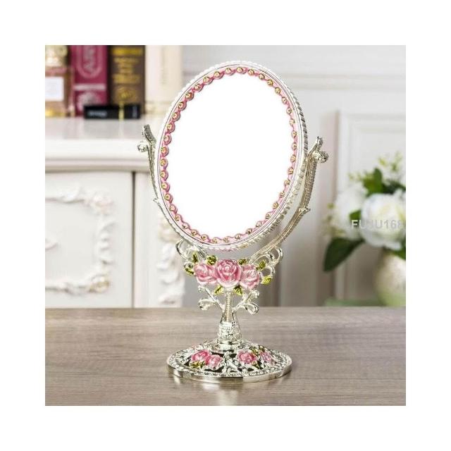 歐式輕奢玫瑰花創意鏡子翻轉可放大臺式雙面梳妝鏡金屬工藝化妝鏡 -
