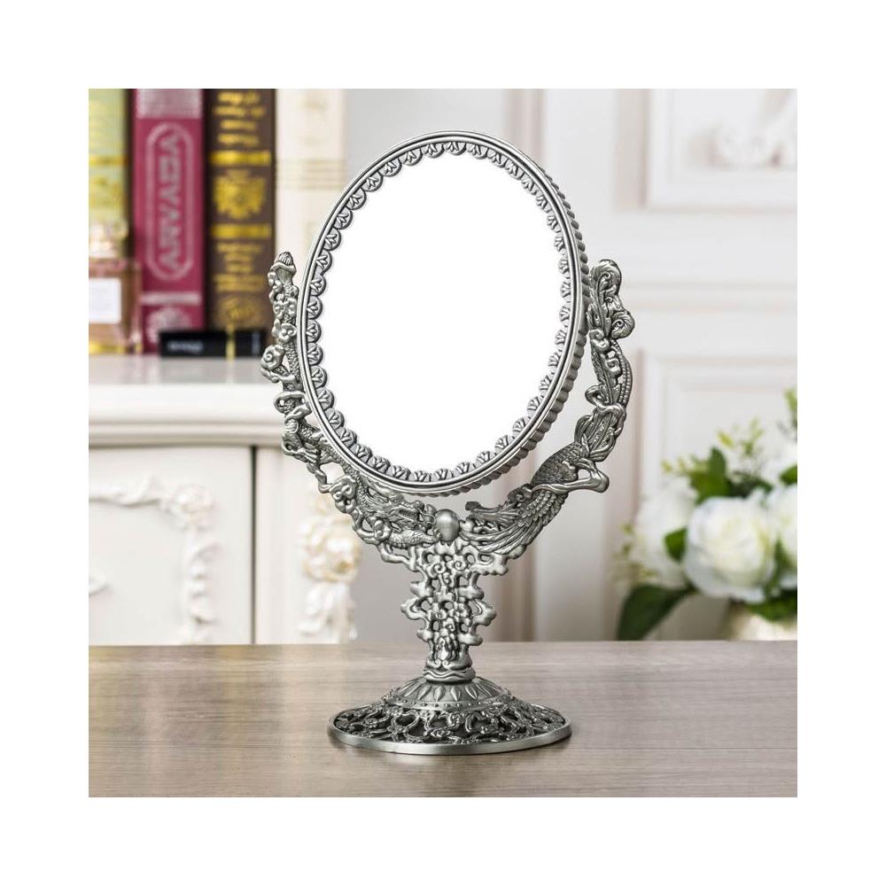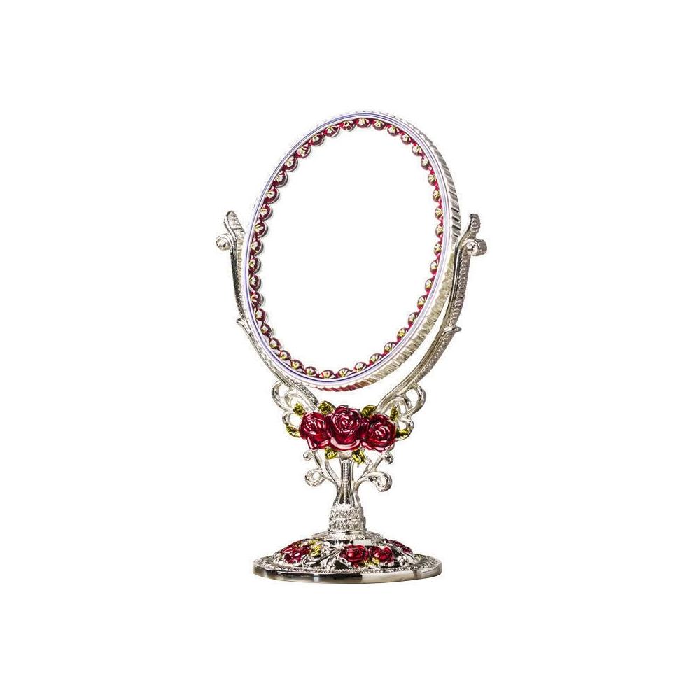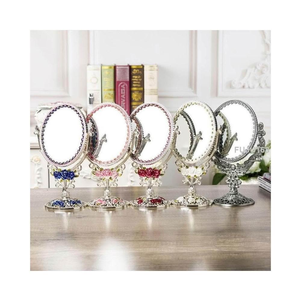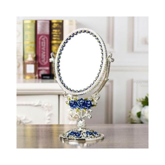 歐式輕奢玫瑰花創意鏡子翻轉可放大臺式雙面梳妝鏡金屬工藝化妝鏡 -