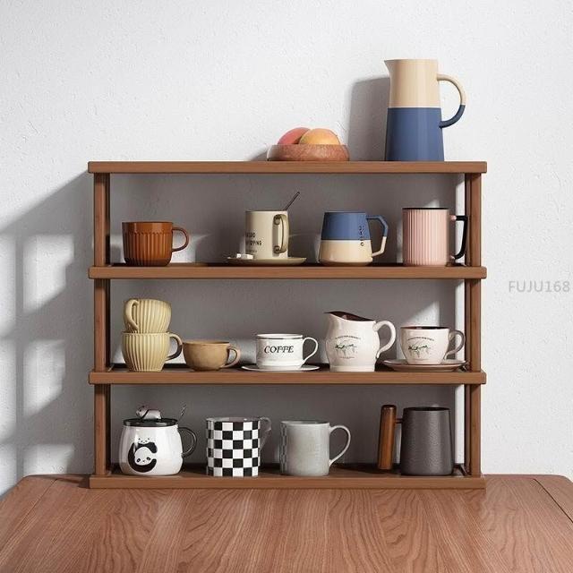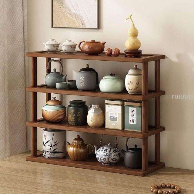 桌面博古架茶杯架子茶壺收納架茶壺中式家居擺放博古架小型置物架 -
