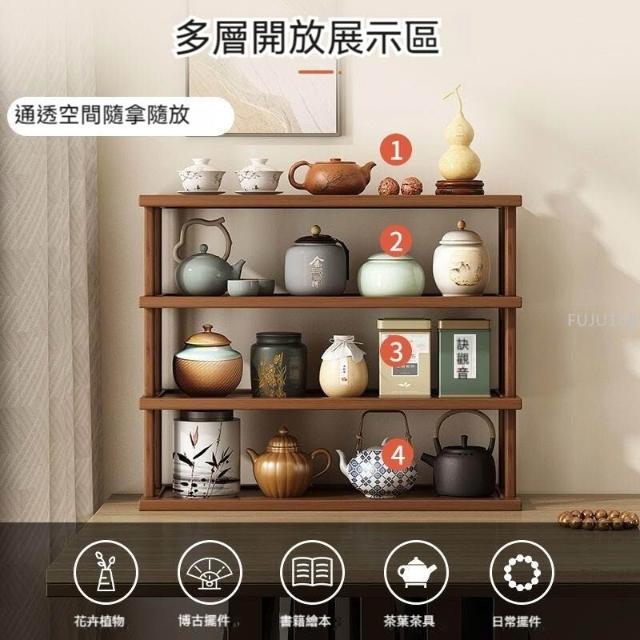 桌面博古架茶杯架子茶壺收納架茶壺中式家居擺放博古架小型置物架 -