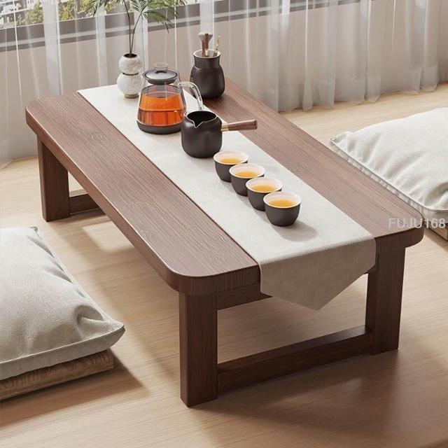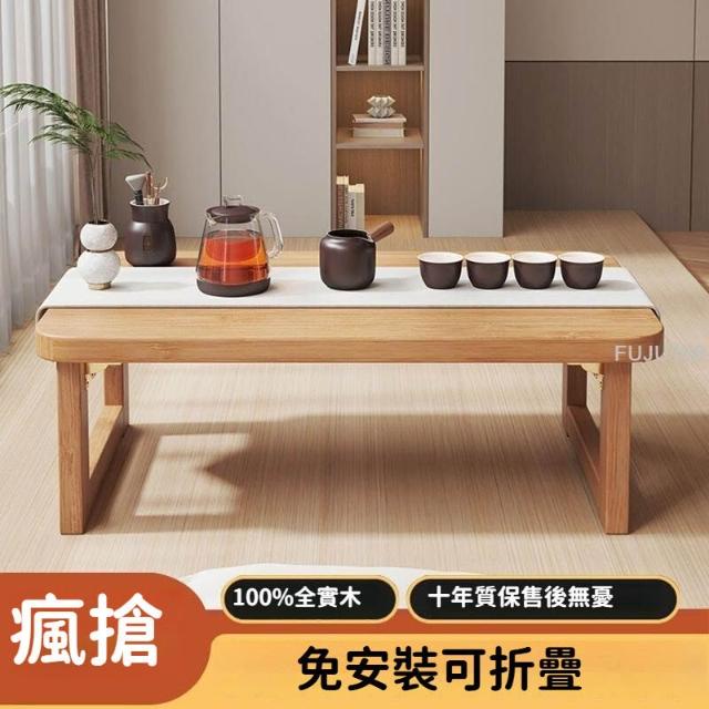 可折疊實木飄窗桌炕桌家用矮桌小茶幾榻榻米茶桌臥室床上學習書桌 -