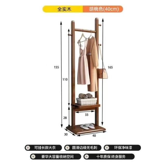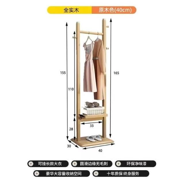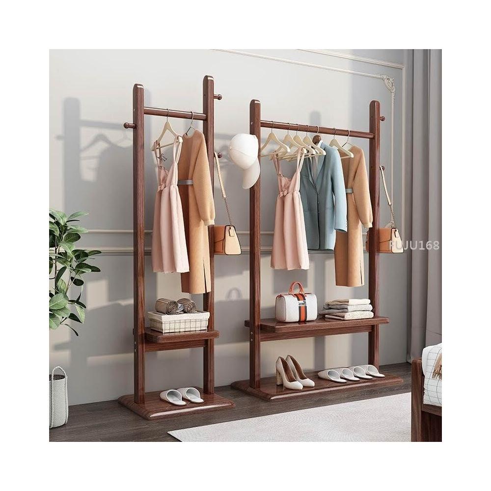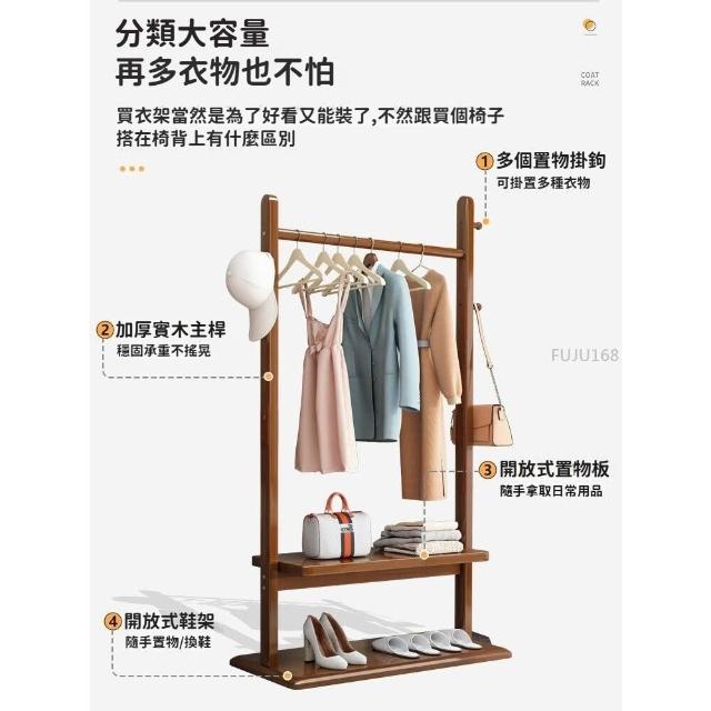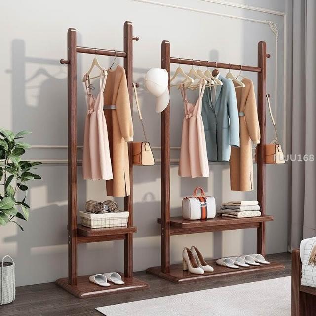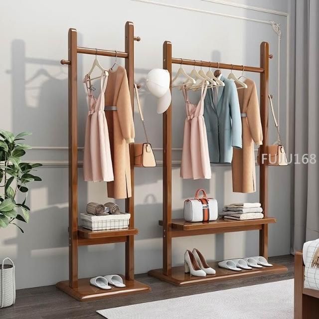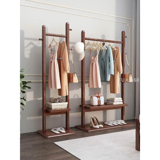 實木衣帽架落地臥室掛衣架家用現代簡約小戶型置物網紅新款衣服架 -