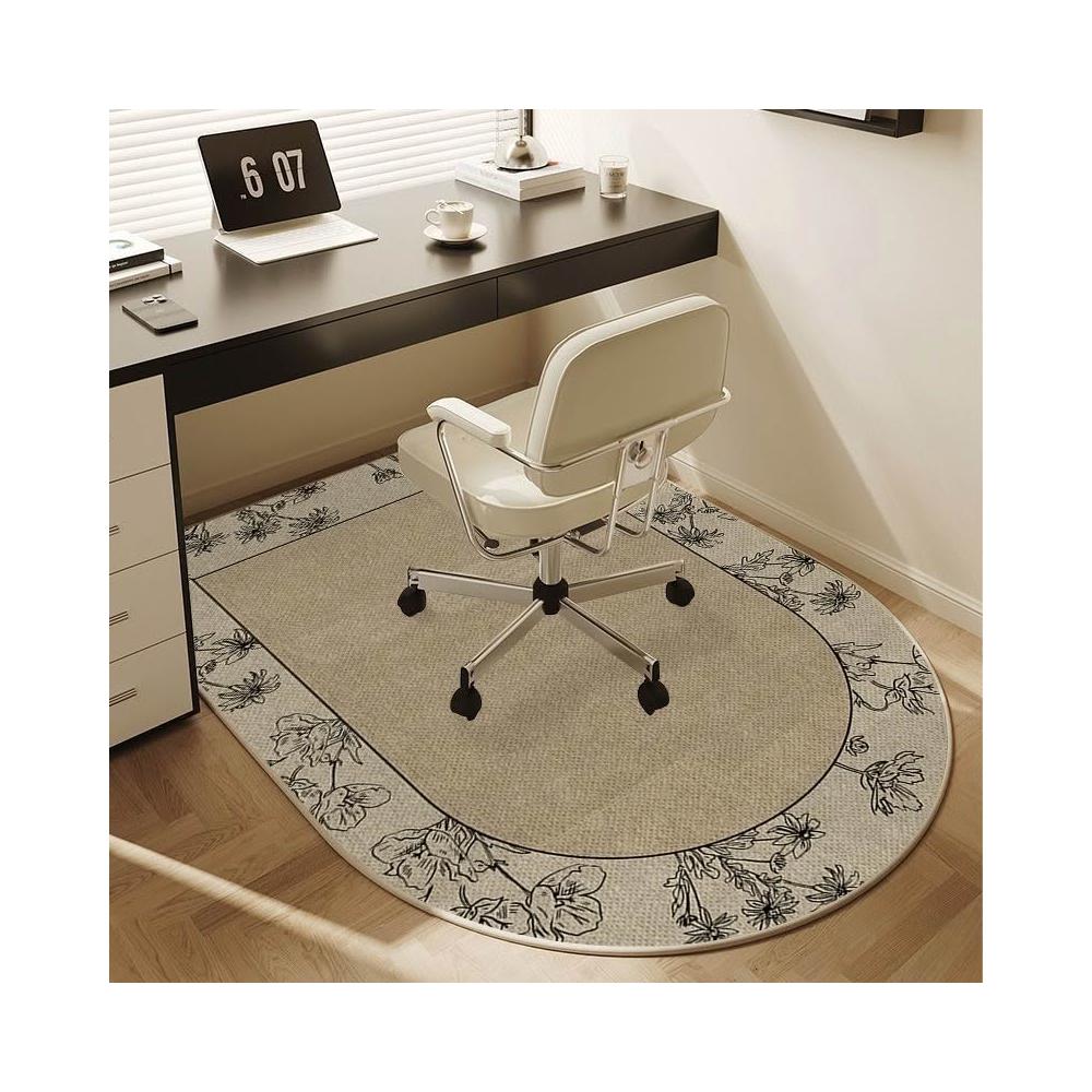 法式書房地毯奶油風客廳電腦椅地墊拱形臥室耐臟耐磨房間轉椅墊子 -