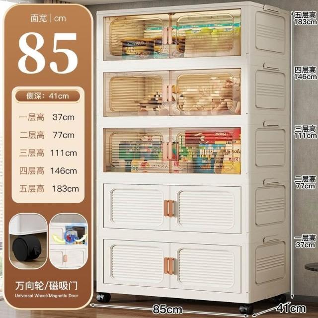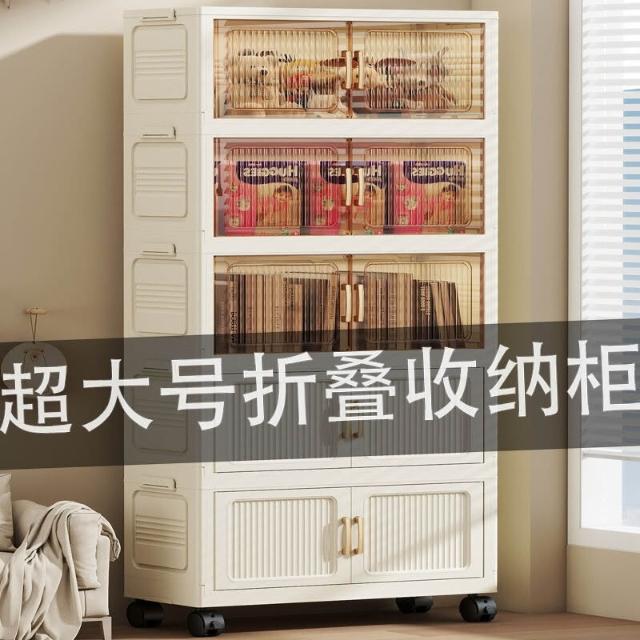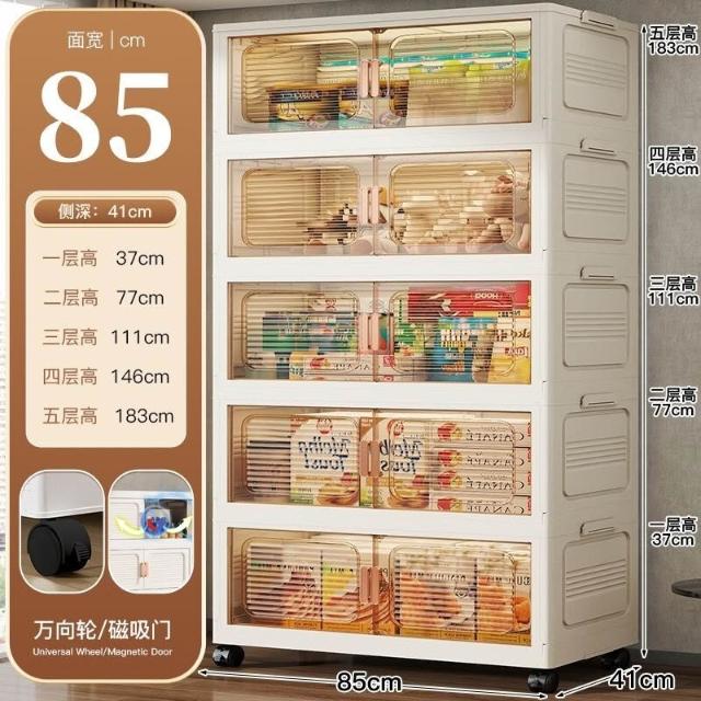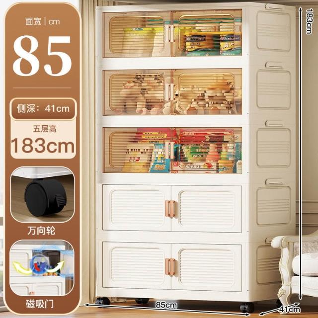 折疊收納櫃 餅乾收納櫃 玩具收納櫃 LRL 85CM寬 摺疊免安裝收納櫃臥室雜物櫃零食儲物櫃玩具置物架