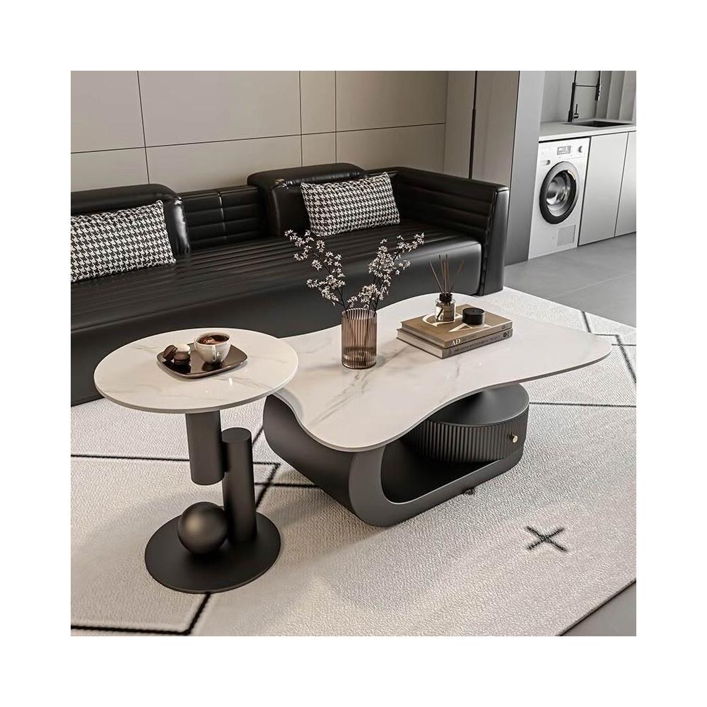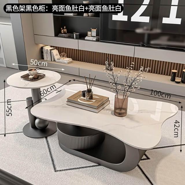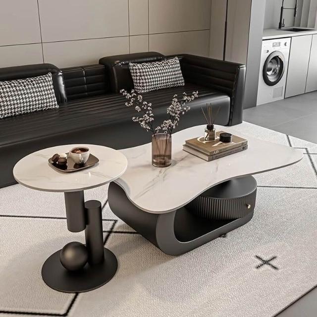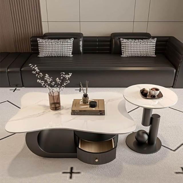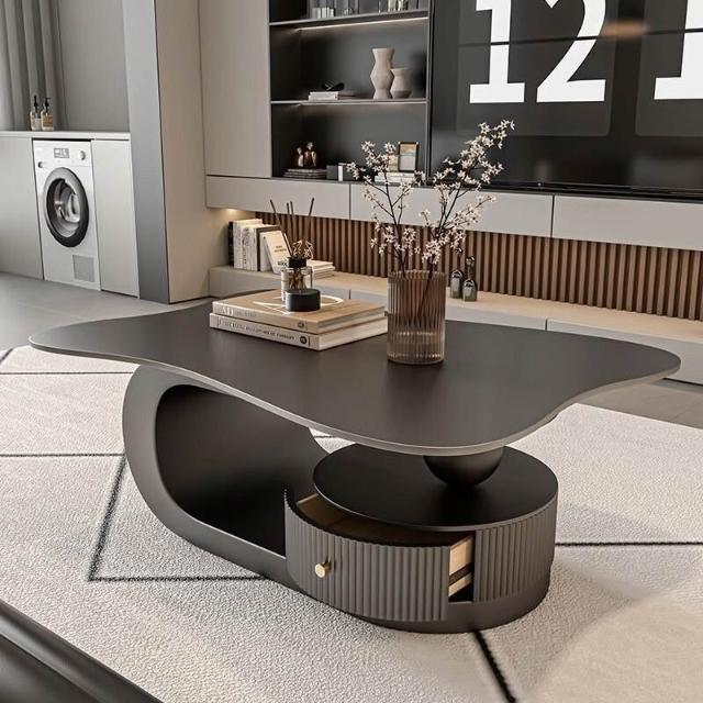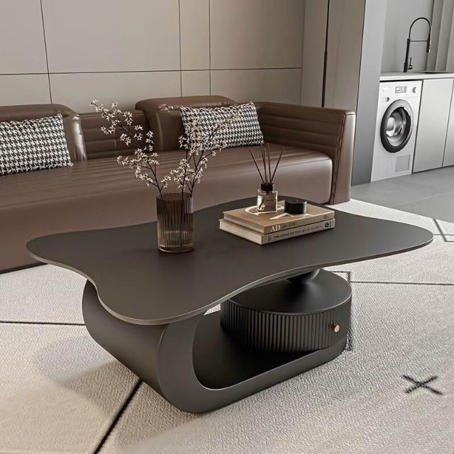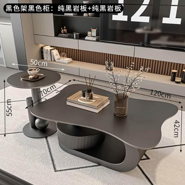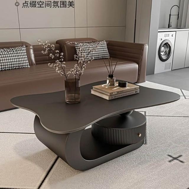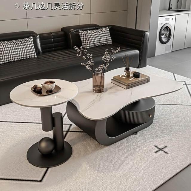可開發票 岩板茶几 大茶几 伸縮茶几 設計師創意巖板茶几客廳家用輕奢高級感茶桌小戶型不規則茶几異形