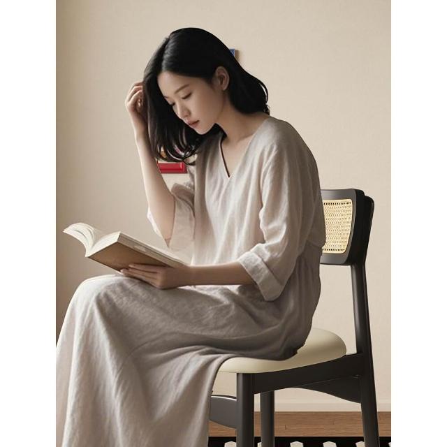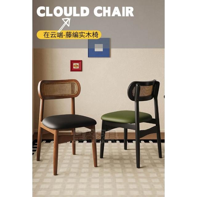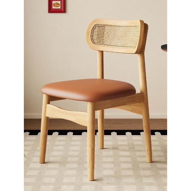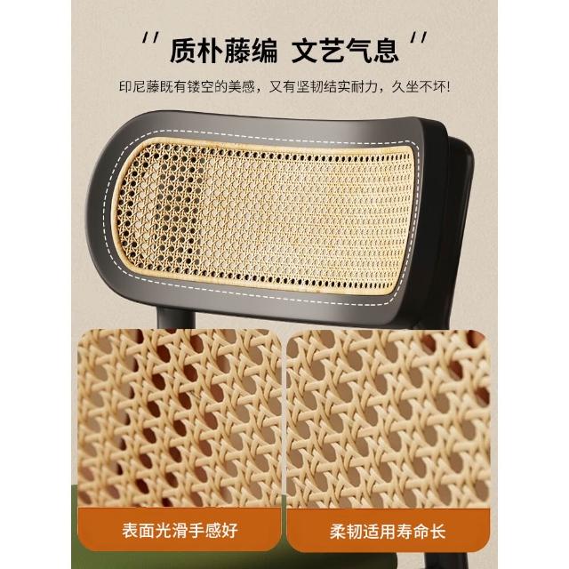 藤椅 藤編椅 小藤椅 法式復古全實木餐桌椅靠背餐椅中古休閒家用酒店藤編椅子網紅凳子