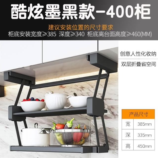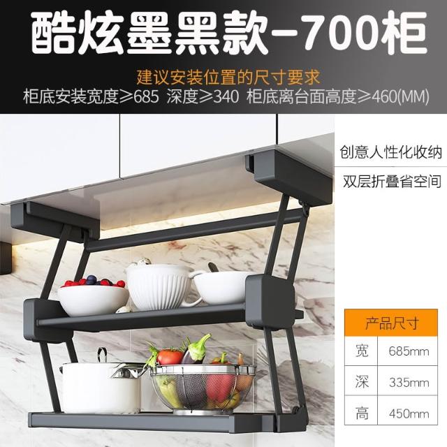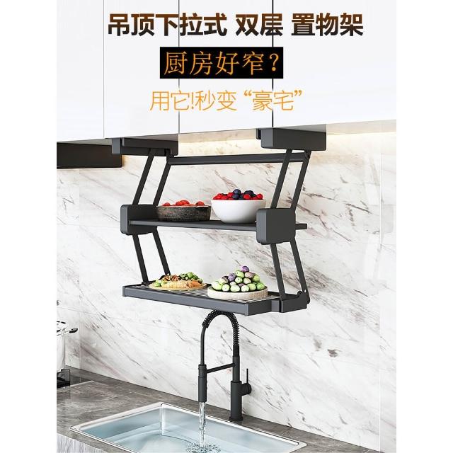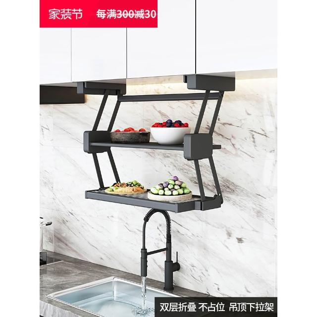 精選廚房櫥柜吊柜下拉式備菜置物架可折疊調味架壁掛式調料伸縮太空鋁