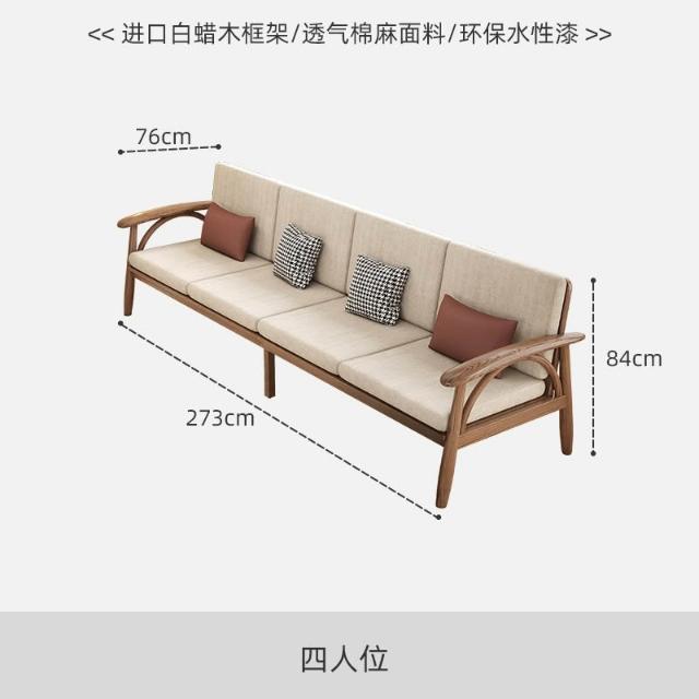 免運 沙發椅 实木沙发 原木沙發 全实木客厅小户型三人位简约现代白蜡木家具组合北欧沙发