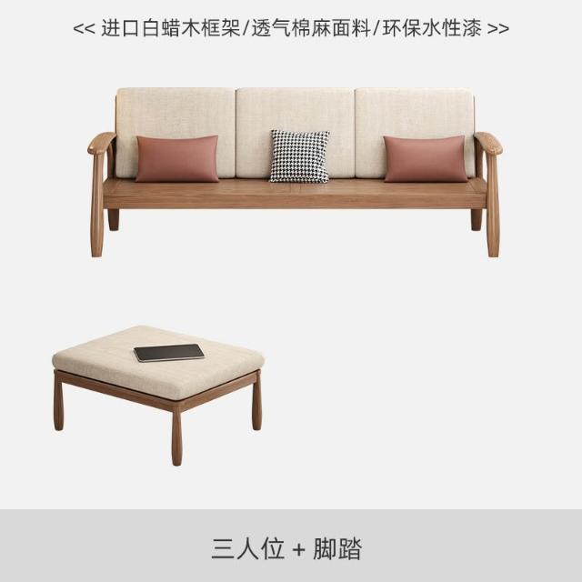 免運 沙發椅 实木沙发 原木沙發 全实木客厅小户型三人位简约现代白蜡木家具组合北欧沙发