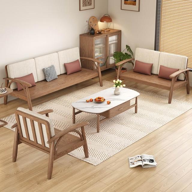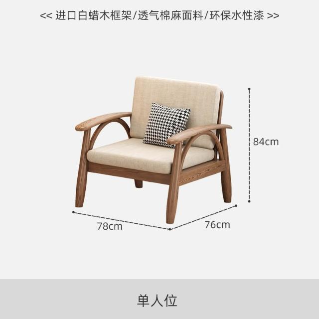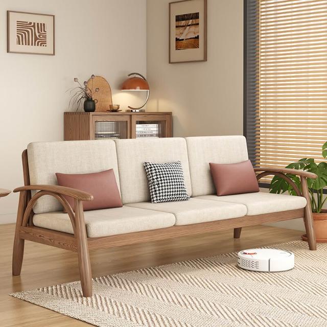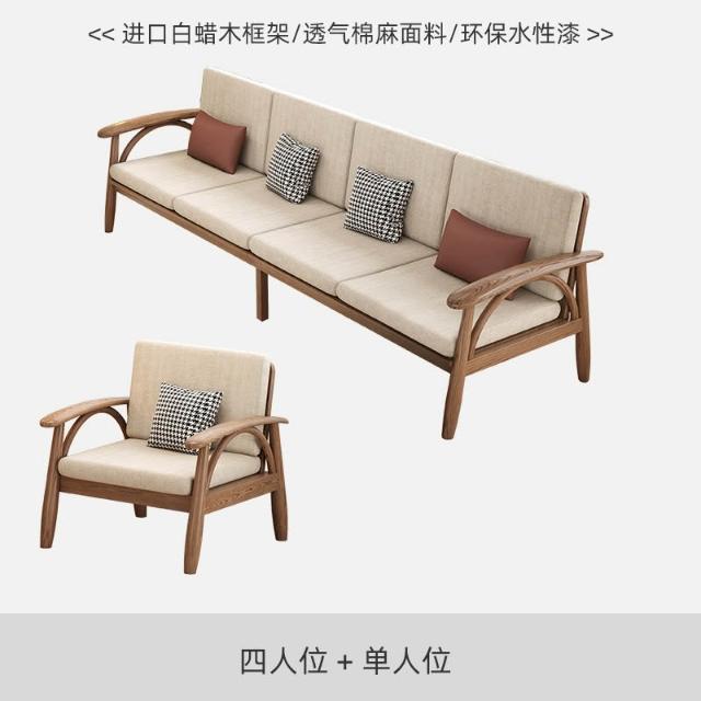 免運 沙發椅 实木沙发 原木沙發 全实木客厅小户型三人位简约现代白蜡木家具组合北欧沙发