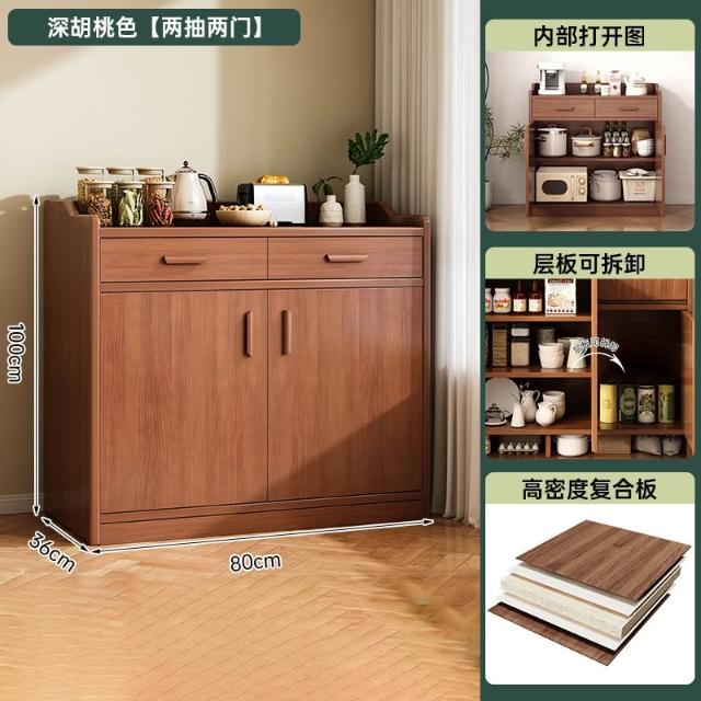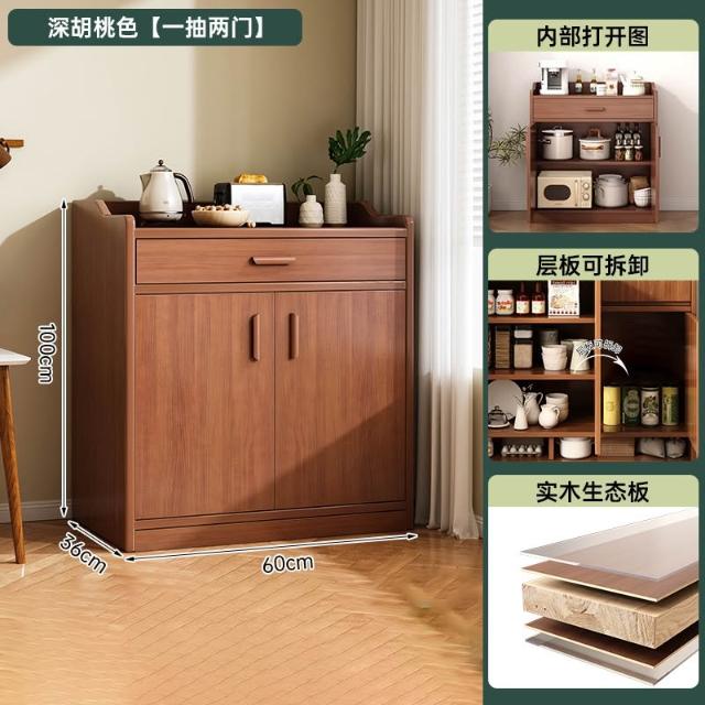 免運 廚房收納置物架 防塵收納櫃 防塵廚櫃 实木餐边柜茶水柜客厅靠墙一体储物柜家用中式简易厨房橱柜置物柜
