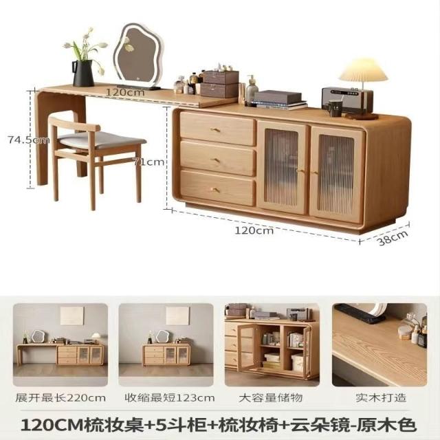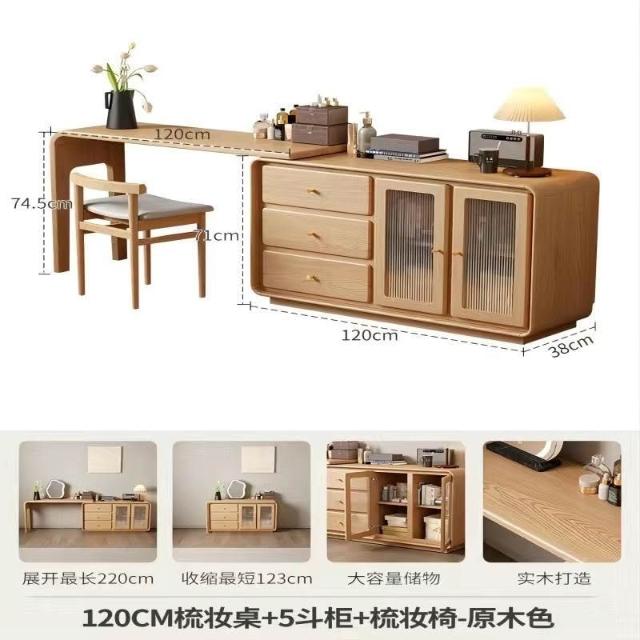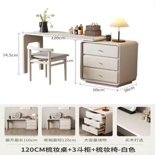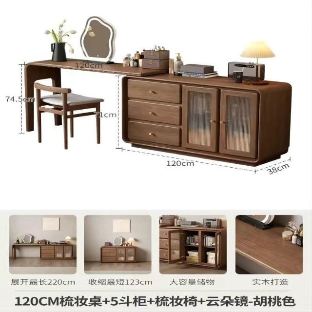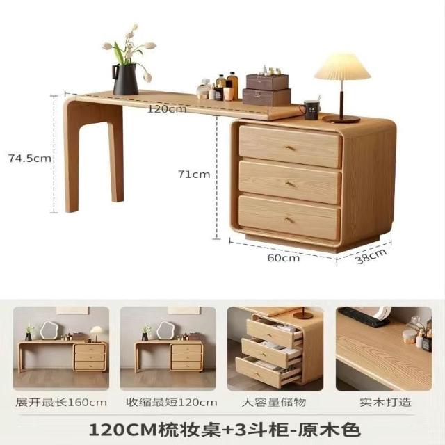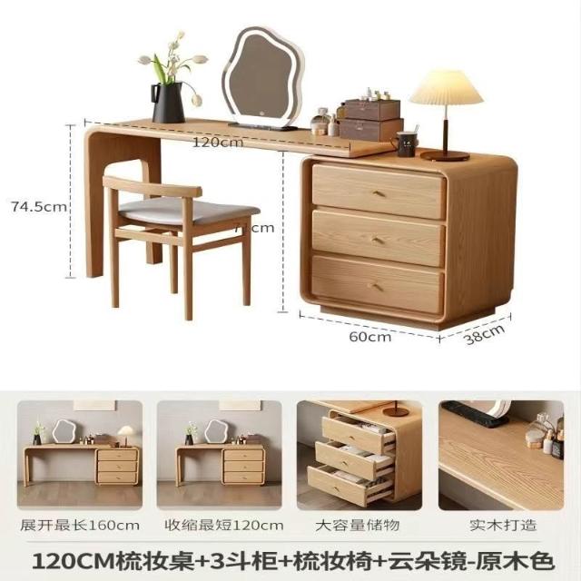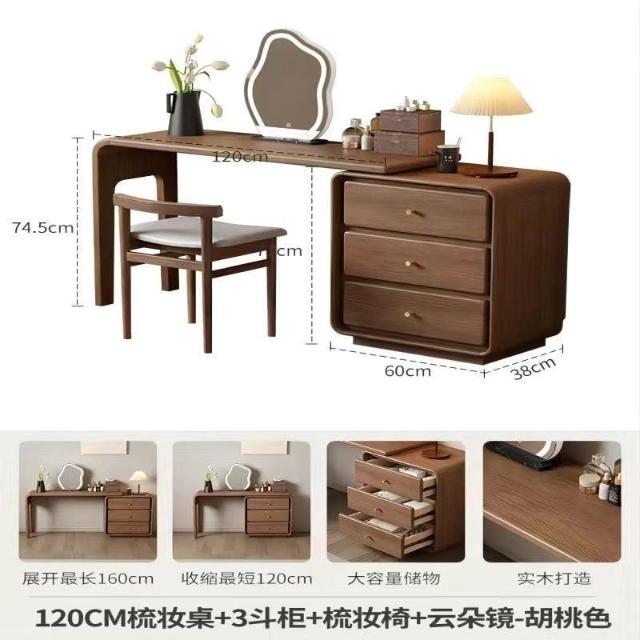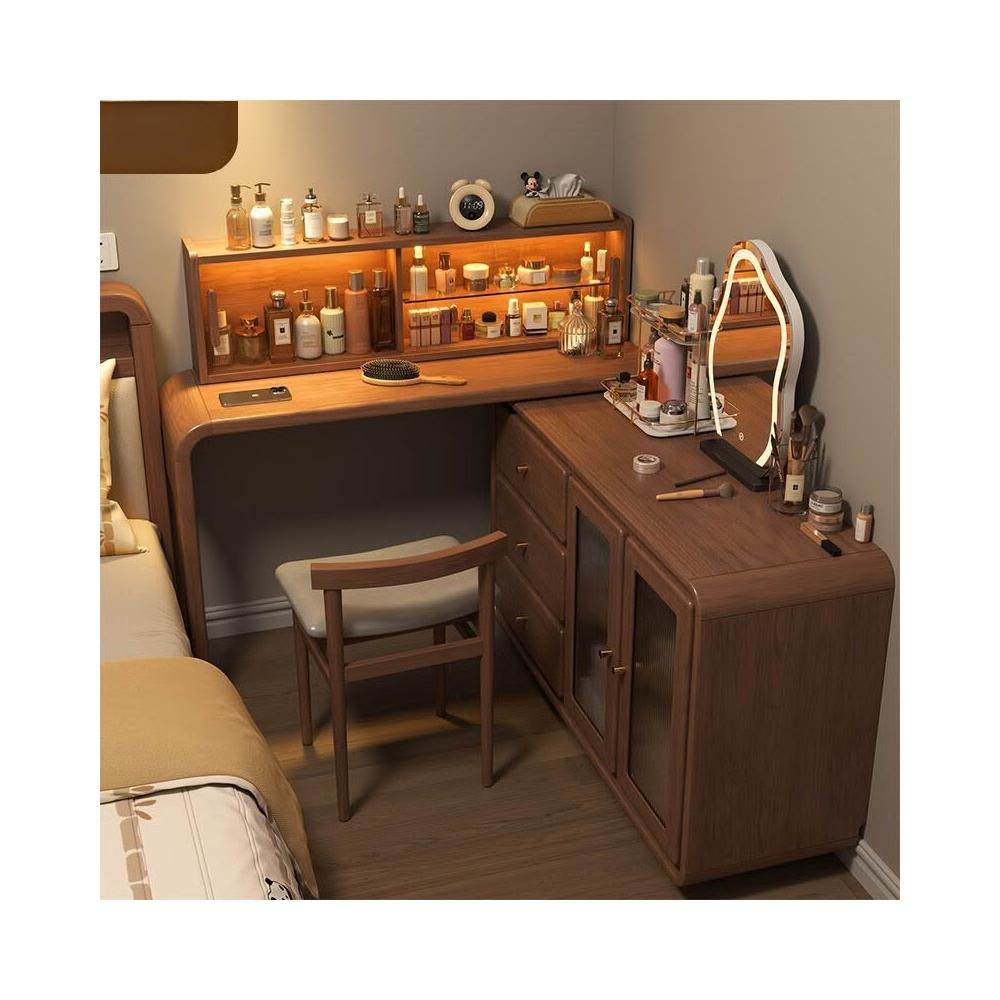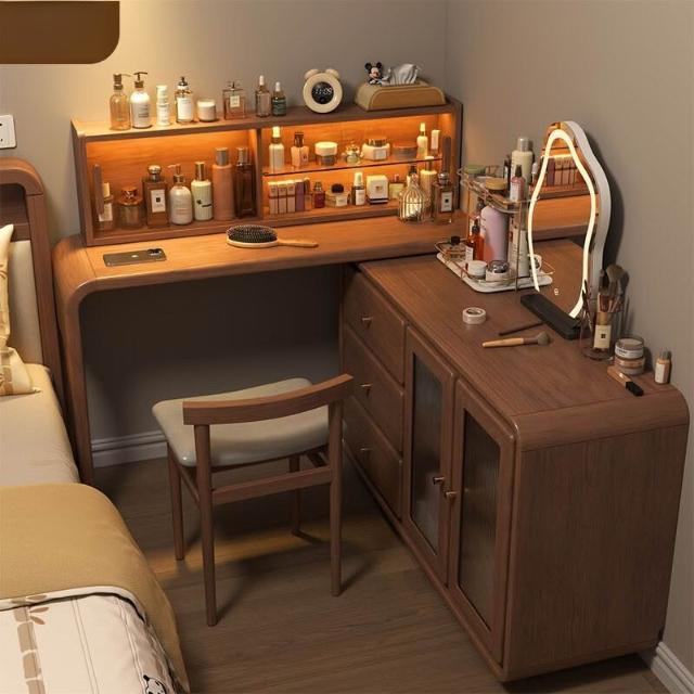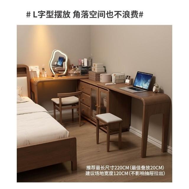 免運 實用梳妝臺 耐用 冬木鬥櫃梳妝臺一體臥室實木轉角書桌簡約現代床尾收納小型化妝臺