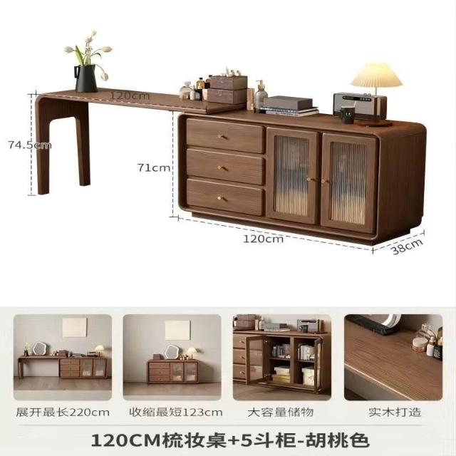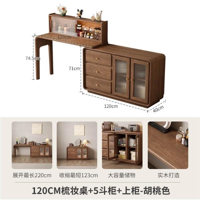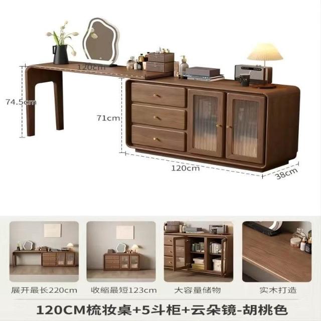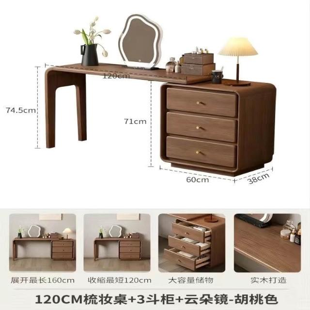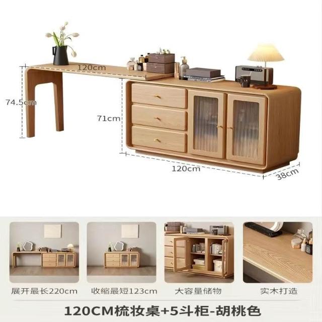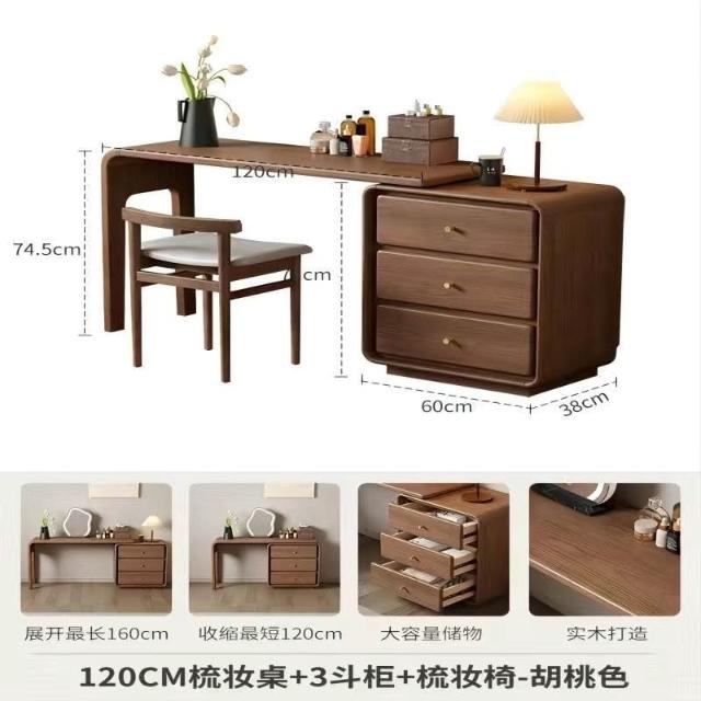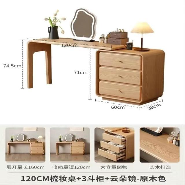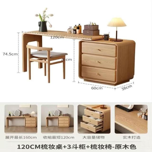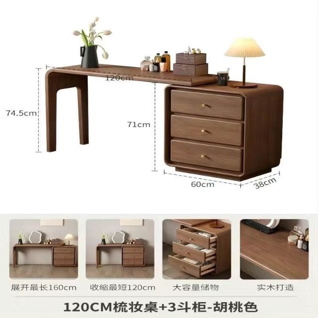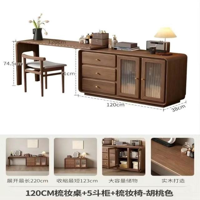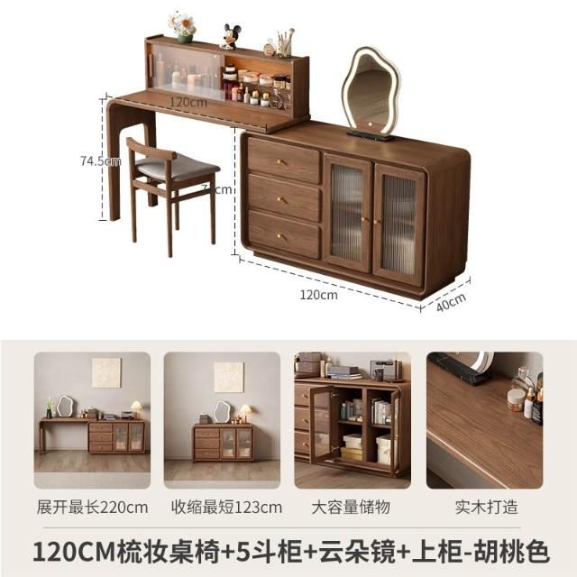 免運 實用梳妝臺 耐用 冬木鬥櫃梳妝臺一體臥室實木轉角書桌簡約現代床尾收納小型化妝臺