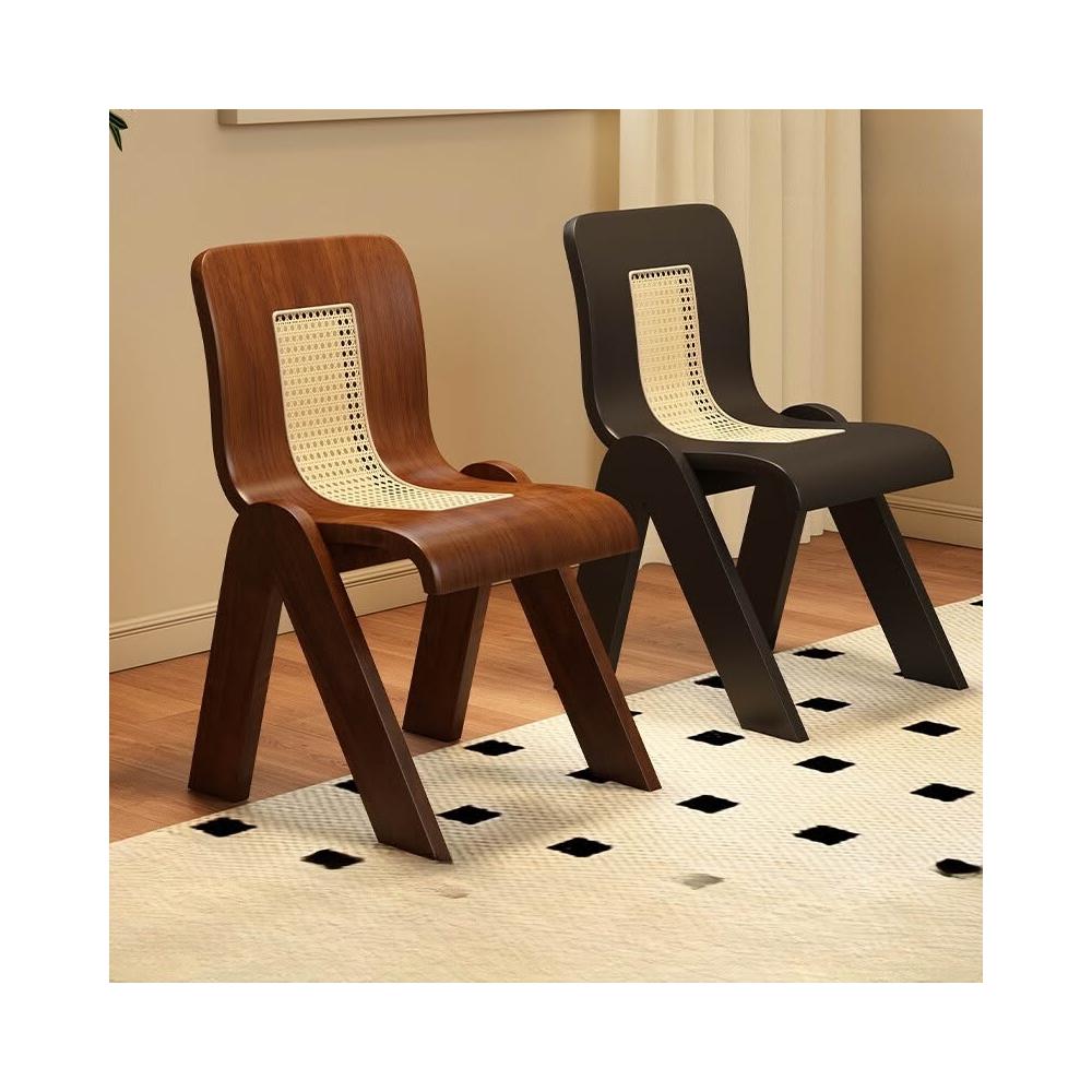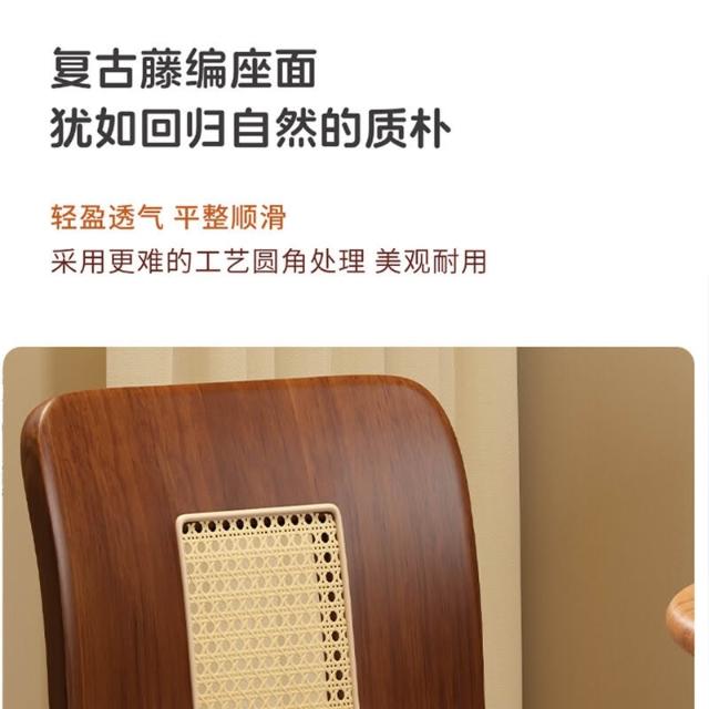 免運 侘寂風椅子 實木藤編椅家用餐桌椅設計C椅中古風法式復古輕奢靠背椅休閒餐椅