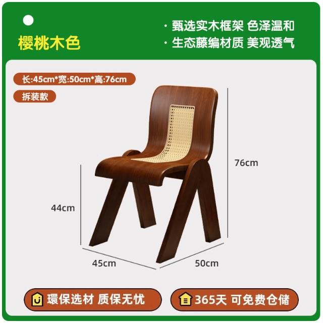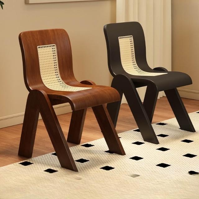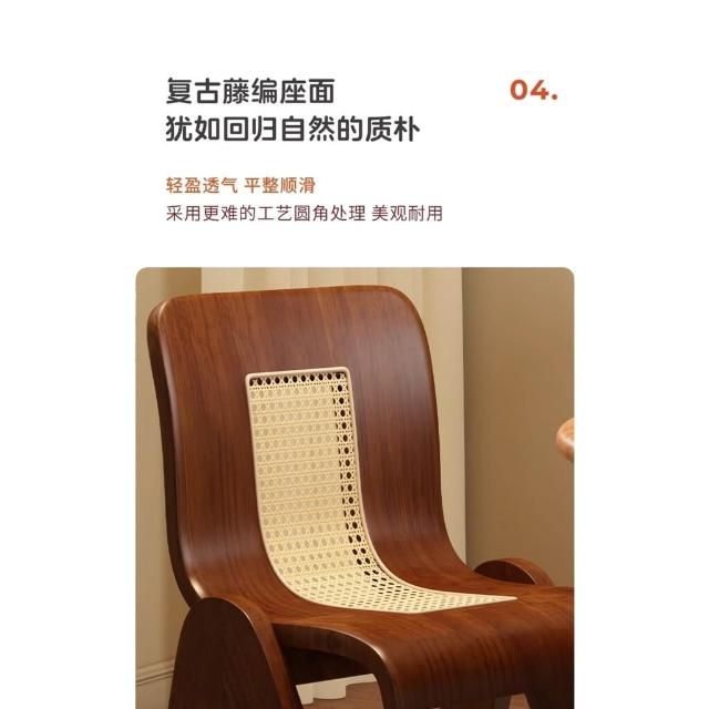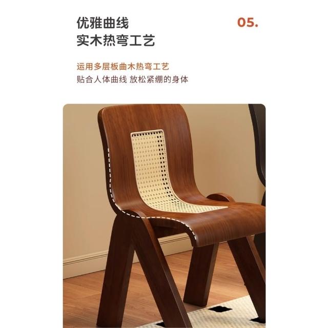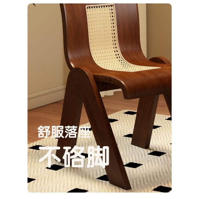免運 侘寂風椅子 實木藤編椅家用餐桌椅設計C椅中古風法式復古輕奢靠背椅休閒餐椅