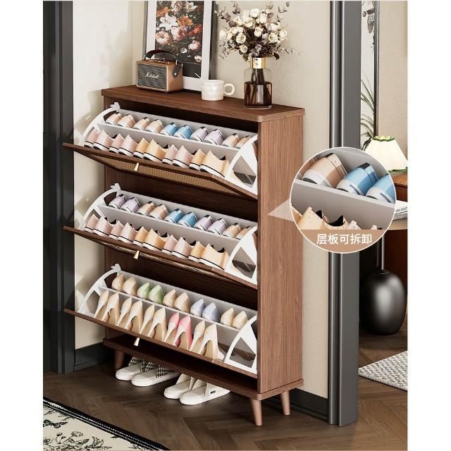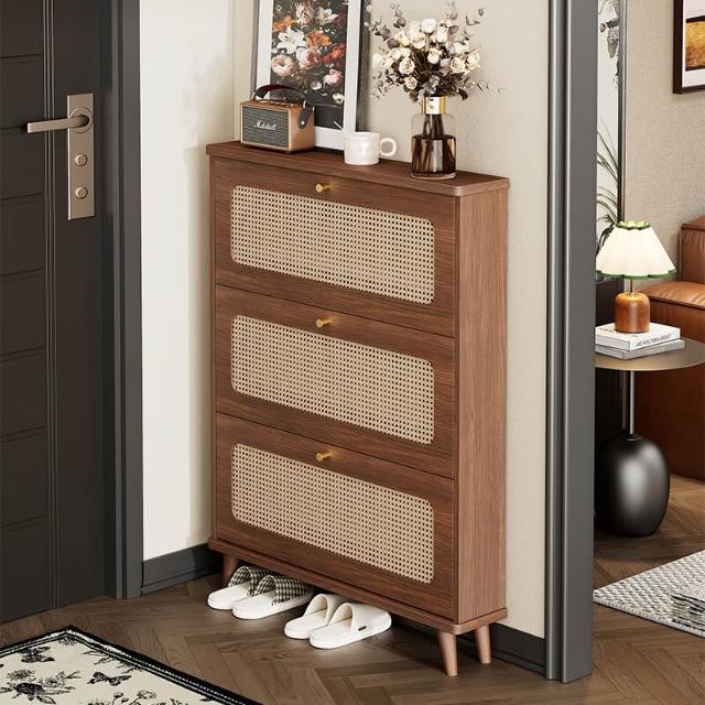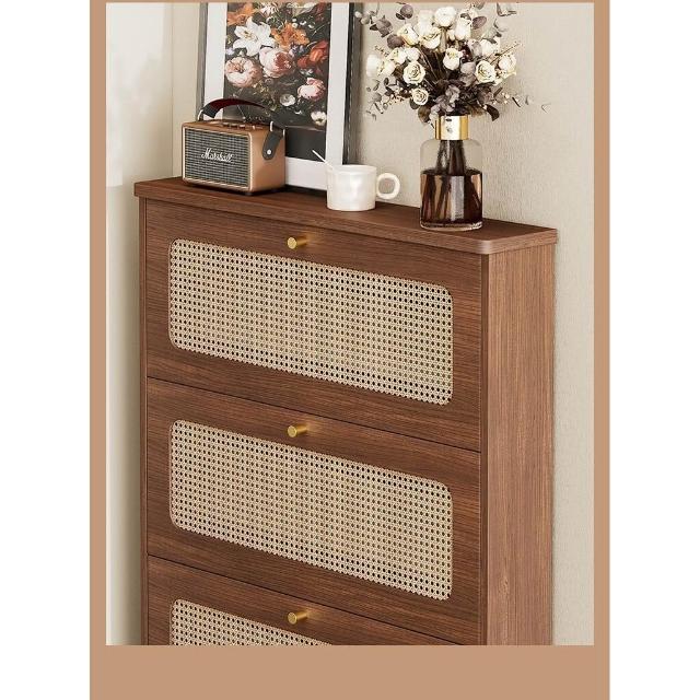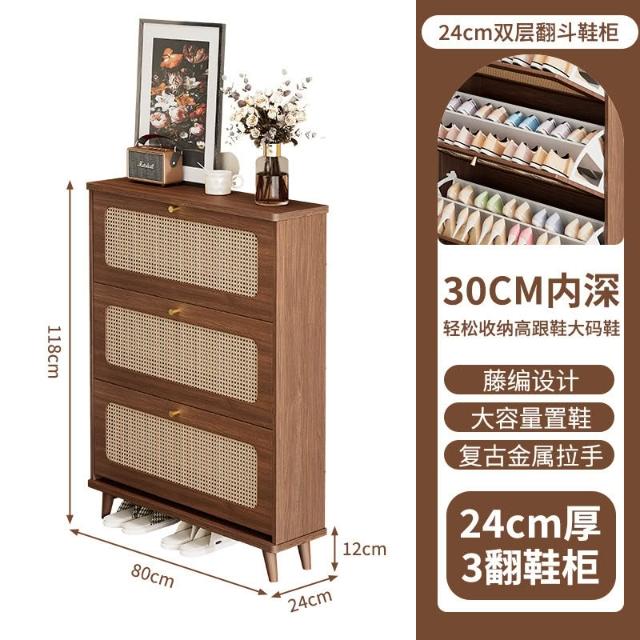 免運 超薄鞋櫃 鞋櫃 玄關鞋櫃 翻斗鞋柜藤編超薄鞋櫃家用門口2025新款中古風玄關櫃入戶胡桃色翻斗窄鞋架