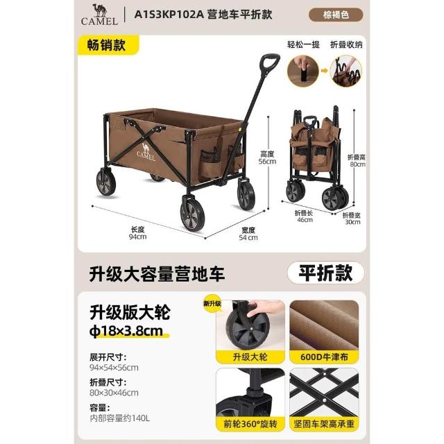 免運 露營推車 車桌兩用 戶外折疊手推車骆驼露营车户外小手推车折叠野餐营地车儿童可躺野营拖车地摊收纳
