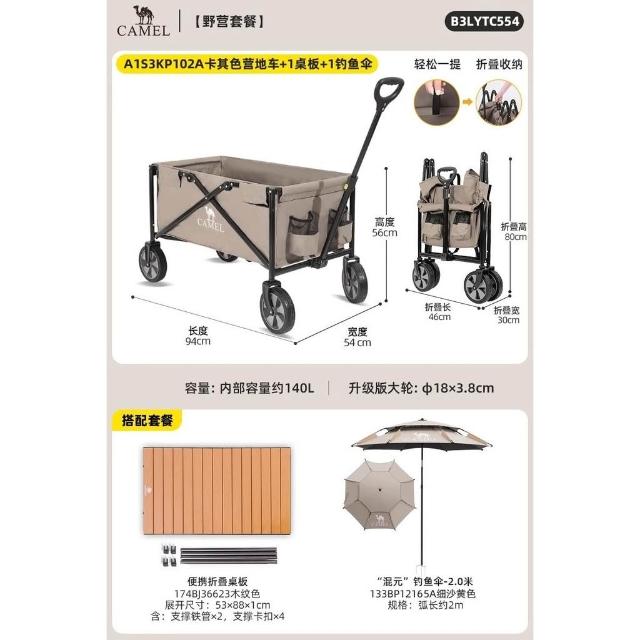 免運 露營推車 車桌兩用 戶外折疊手推車骆驼露营车户外小手推车折叠野餐营地车儿童可躺野营拖车地摊收纳