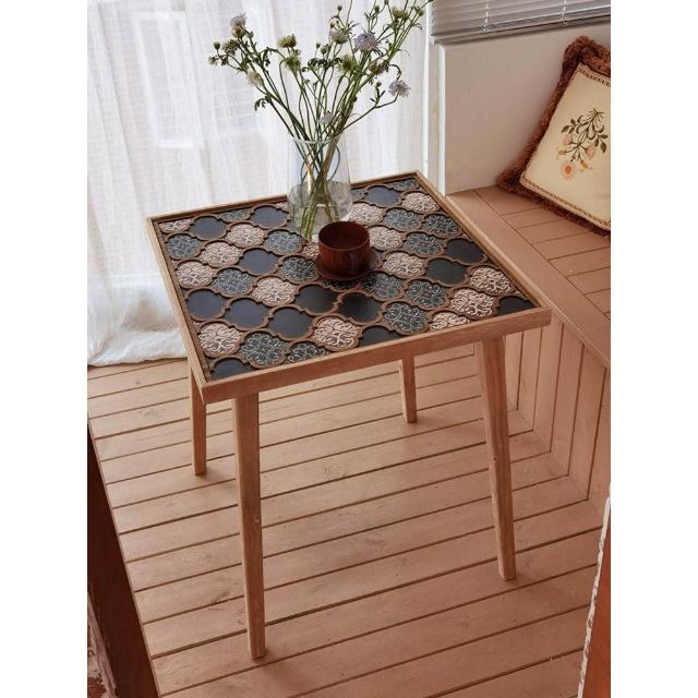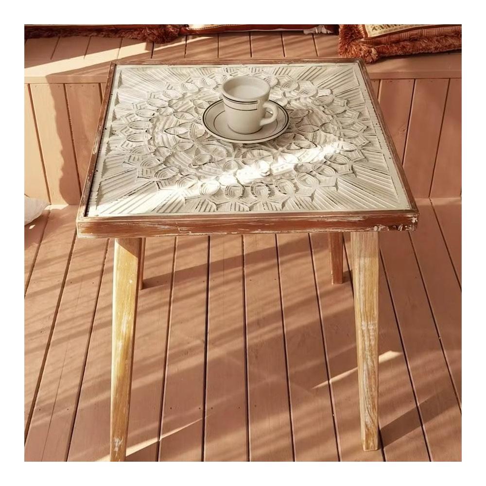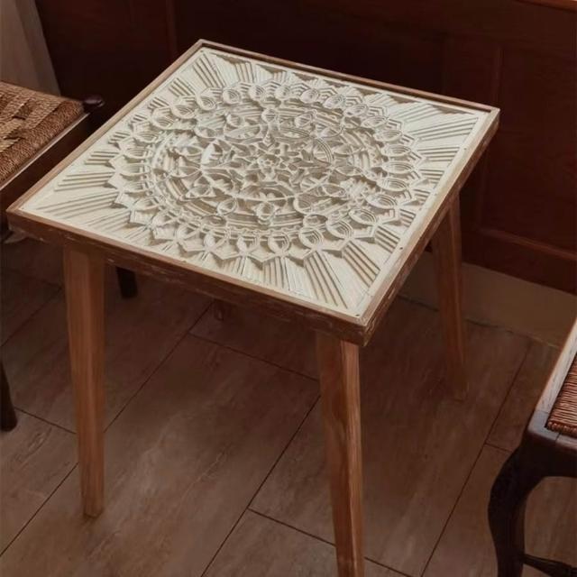 台灣熱銷 中古餐桌 做舊茶桌 方桌 洽談桌 法式復古實木咖啡桌 法式甜品店小方桌 雕花餐桌