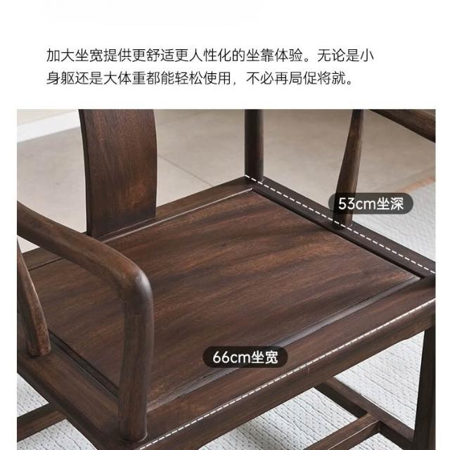 太師椅 主人椅 洽談椅北美黑胡桃實木椅子 新中式餐椅太師椅 圈椅官帽椅辦公室茶桌靠背椅