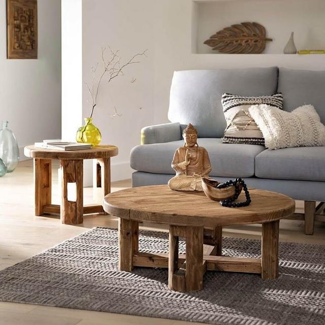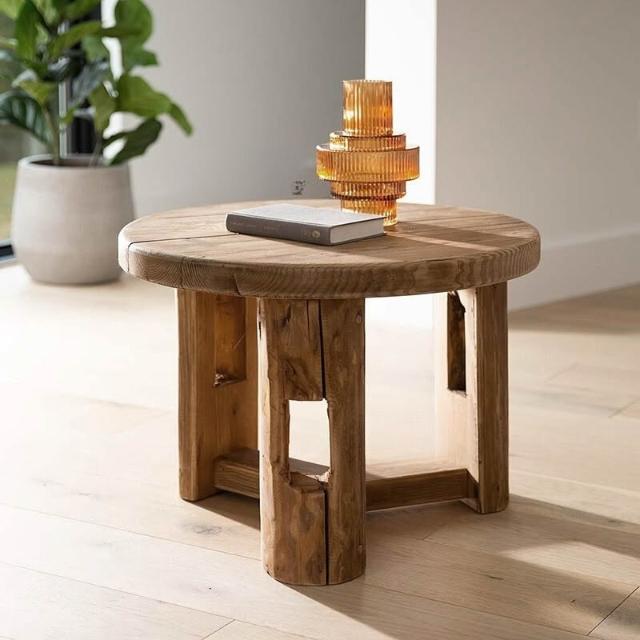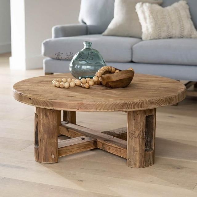 可開票 茶几 茶台 茶桌 日式實木茶幾 美式鄉村小戶型茶台 家用原木圓形侘寂風沙發邊几 民宿家具定製